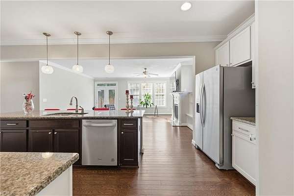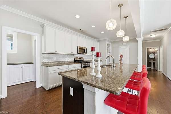 Est $4,441/moQuiet and Quaint Neighborhood in the historic courthouse/Kellam area. This home features primary suites on each level, security system, hardwood entire first floor, spacious bedrooms, Large Flex Room over the garage and so much more! This open concept home comes with high ceilings, kitchen and family room combo, butler's pantry, walk in pantry and a side porch off the dining room. The 6ft fenced private rear large yard has a salt water pool, gazebo and pavers for entertaining and kids play. Additional features include a pull down attic with flooring and multiple walk in attics great for storage. This home has been well maintained, built by Bishard homes and located in the Kellam school district.