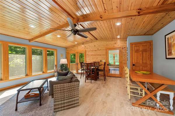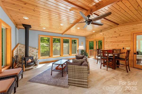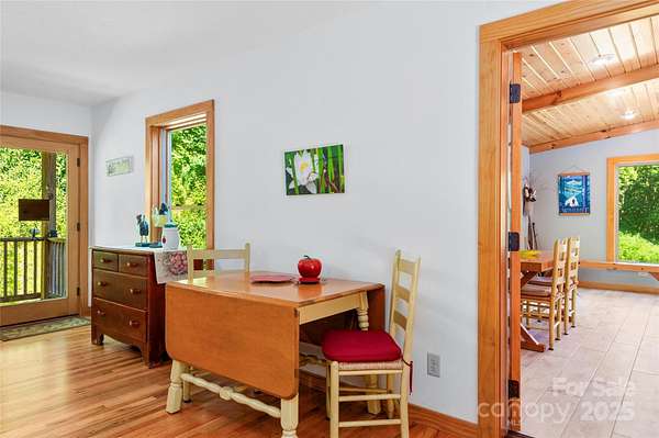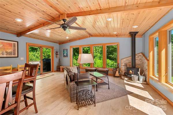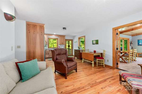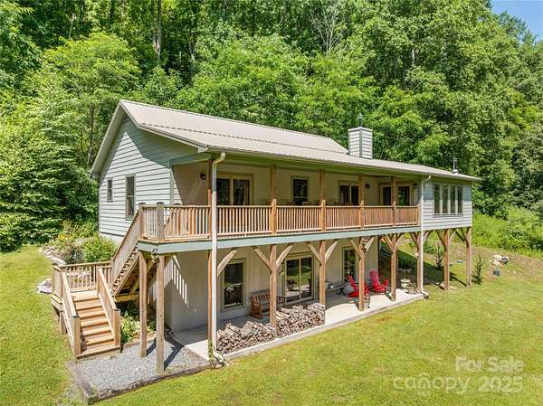 Enjoy the cabin vibes as you rock the day away in this private home located in the Spring Creek Community of Madison County. The "Apple Cabin by the Creek" is a solid home that sits perched above a flowing creek! With 11 acres on which to roam, you will find opportunities for hiking, fields for planting, gorgeous perennial gardens, birds singing, mature trees, and of course, flowing water in which to play! Inside the home, there is plenty of room in which to spread out happily. Make this your private mountain getaway, investment opportunity, or full time residence. Either way, what a great place to be! Fiber internet will help you stay in touch with the outside world, yet you will be a world away. There is no pesky HOA here, just friendly neighbors and a sense of community.