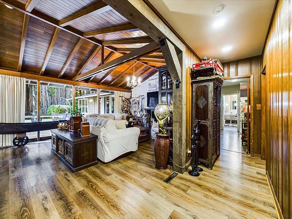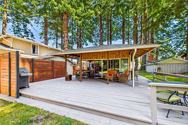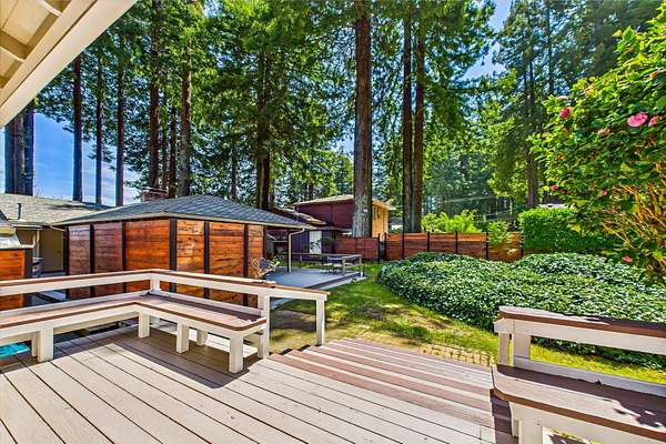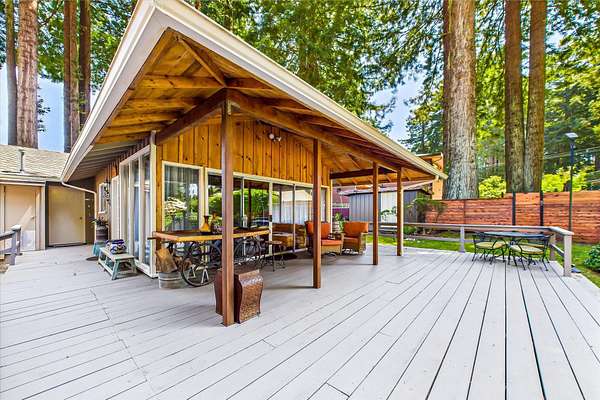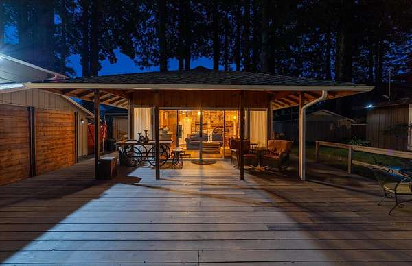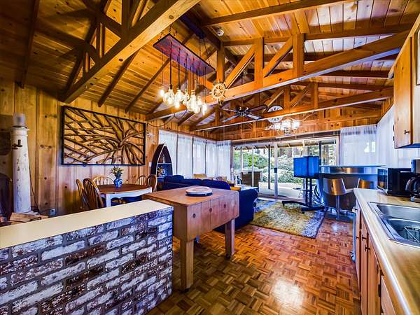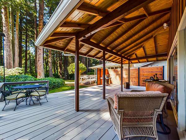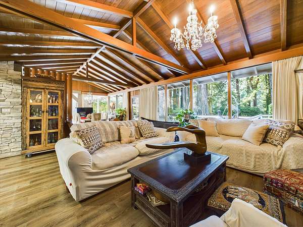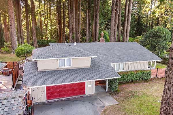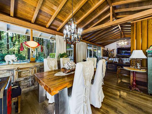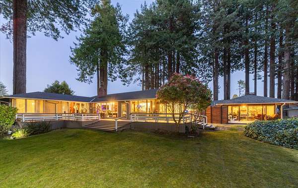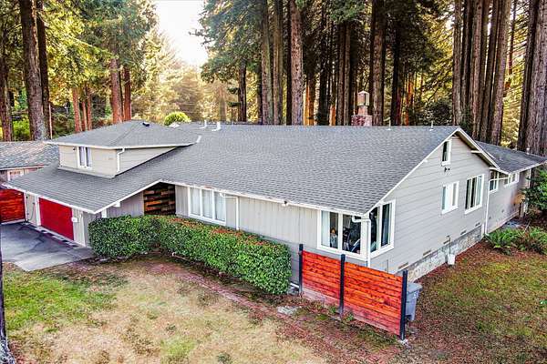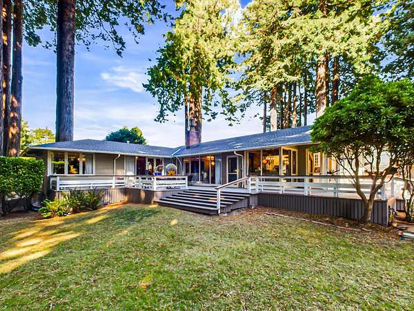 Est $7,792/moSet among 1.61 acres of Redwood forest, this architect-designed estate by Angus McSweeney blends refined updates with timeless design. The 2,953 sq ft main residence offers 5 bedrooms and 4 bathrooms, with floor-to-ceiling windows that frame serene natural views and fill the home with light. The chef's kitchen features quartz counters, stainless appliances, and a hammered steel sink. The primary suite opens to a wrap-around deck overlooking park-like grounds. A detached 936 sq ft guest area provides 2 bedrooms, 1 bath, and flexible space for extended stays or private use. Vaulted ceilings, updated baths, wood stove, and fireplace. Offered with three parcels in a premier Humboldt setting.