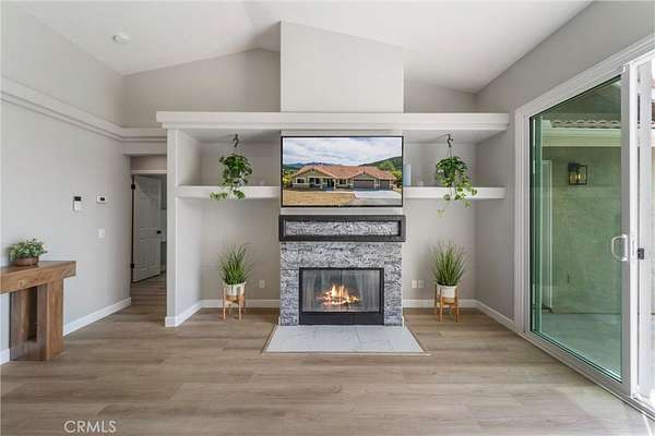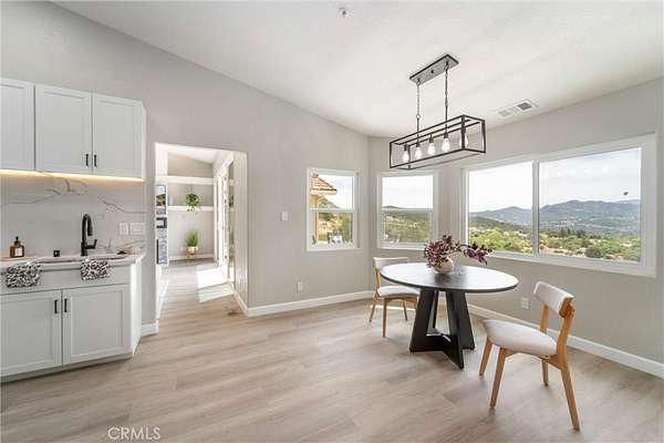 Set above the valley with sweeping panoramic views, the home has been thoughtfully updated throughout with a clean, modern aesthetic and an open layout designed to take full advantage of the surrounding landscape. Large sliding doors frame the view and create a seamless indoor-outdoor connection, bringing natural light and scenery directly into the main living space.