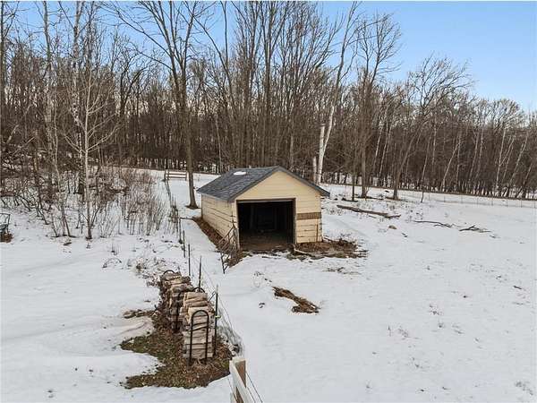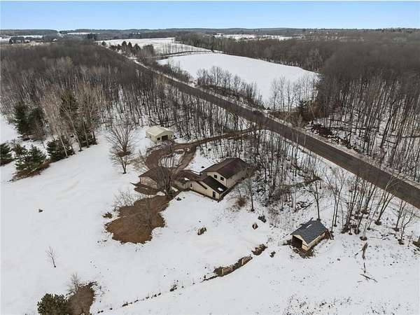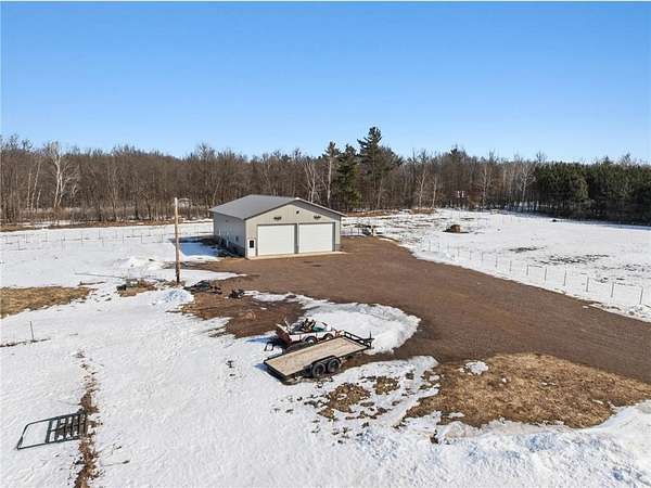 Spacious 4-bedroom, 3-bath home set on 35.6 acres just minutes from the amenities of Rice Lake. This property offers a great mix of comfortable living space and a well-equipped setup for horses or hobby farming. The home features a functional layout with main-floor laundry, open living spaces and large unfinished space off the laundry room with mechanicals and plenty of space for a home gym or office. Paved driveway leading to the house, detached 2-car garage, and a large pole shed provides excellent storage for equipment, recreational vehicles, or workshop space.. Horse enthusiasts will appreciate the barn with three stalls, heat, air conditioning, water, and its own septic system already installed. Camper hookups are also available for guests or extended stays. The majority of the acreage is fenced for paddocks & runs, with portions set up with electric fencing, and multiple loafing sheds, making it ready for horses or animals of your choice. A versatile property with room to live, work, and enjoy the outdoors. Estate Sale - Sold AS-IS. Main floor bedroom needs some finishing work, most materials appear to be there. Garage nearest home is in poor condition and needs to either be removed or the foundation replaced.