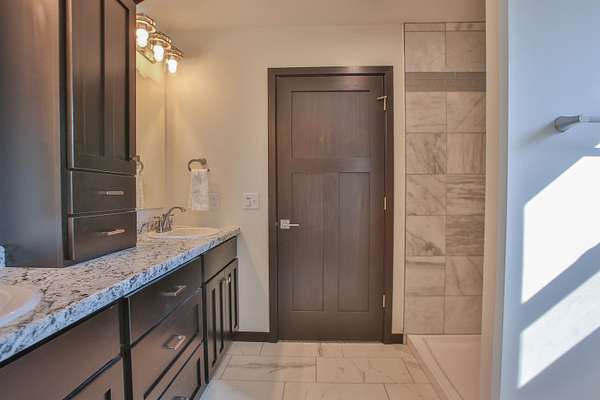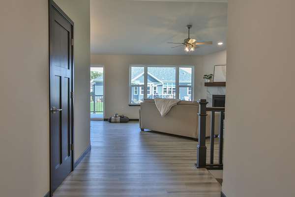 Welcome home to the Azalea D3 floor plan with a striking double gable, part of the Executive Series by Denyon Homes. This beautifully designed 3-bedroom, 2-bath ranch offers 2,252 square feet of thoughtfully crafted living space with an open concept layout and vaulted ceilings that create a bright, airy feel throughout. The inviting living room features a tiled gas fireplace, perfect for relaxing or entertaining. The kitchen is both stylish and functional, showcasing a large granite center island, custom cabinetry, and included microwave and dishwasher. Just off the kitchen, you’ll find a spacious walk-in butler’s pantry complete with a sink and ample storage, making organization and meal prep effortless. Convenience continues on the main level with a mudroom and laundry area located just off the garage entrance. The owner’s suite offers a private retreat with a generous walk-in closet and a well-appointed bathroom featuring a custom tile shower. Two additional bedrooms and a full bath complete the main level. The lower level includes a comfortable family room, with additional space already framed and plumbed for a future fourth bedroom and third bathroom, offering flexibility for growth. This home also includes a service garage door, seamless gutters, and a blacktop driveway for added functionality and curb appeal. Estimated completion is set for summer, making this the perfect opportunity to move into a brand new home with high-end finishes and room to expand. Photos may be of a similar model.