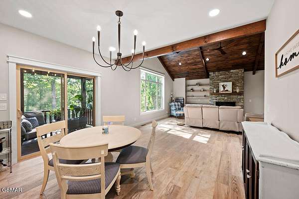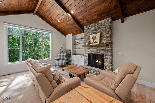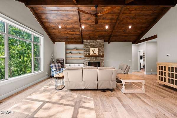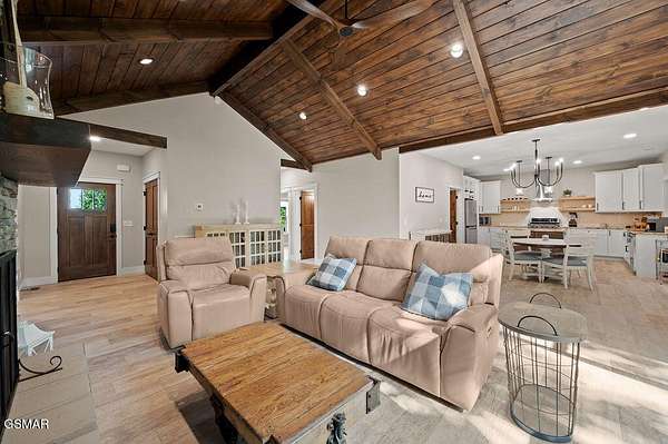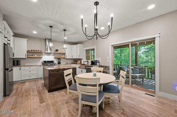 This beautifully crafted 3-bedroom, 2-bathroom home is just two years old and located in the highly sought-after Homestead West subdivision in Walland, Tennessee. Perfectly positioned between Townsend and Maryville, and only a short drive to Gatlinburg and Pigeon Forge, this property offers an ideal blend of serene mountain living and convenient access to East Tennessee's most iconic destinations. Nestled at the end of a quiet cul-de-sac, the home sits on a spacious, usable lot with peaceful mountain views, a screened-in rear porch, and a fire pit area that's perfect for relaxing under the stars. Inside, the 1,871 square foot residence features an open-concept layout with a large living area anchored by a gas propane fireplace, a dedicated den, and ceramic tile flooring throughout. Two of the three bedrooms include walk-in closets, and both bathrooms offer custom walk-in showers with frameless glass enclosures. The kitchen is outfitted with custom cabinetry, granite countertops, a full ceramic backsplash, stainless steel appliances and hood vent, and a premium Blanco sink. An oversized two-car garage spans 941 square feet and includes a workshop area with potential for additional storage or future expansion. Additional high-end features include a Generac whole-home generator, tankless water heater, water filtration system, fully encapsulated crawlspace, full exterior security lighting, wood ceiling fans, custom woodwork, and matching solid-core doors throughout. The maintenance-free exterior combines board and batten siding, stone accents, and a mix of dimensional shingles and metal roofing for a clean, elevated aesthetic. With 337 square feet of porches and decking, the outdoor space is just as inviting as the interior. Whether you're looking for a full-time residence, a quiet mountain getaway, or a potential short-term rental investment, this private mountain retreat checks every box.