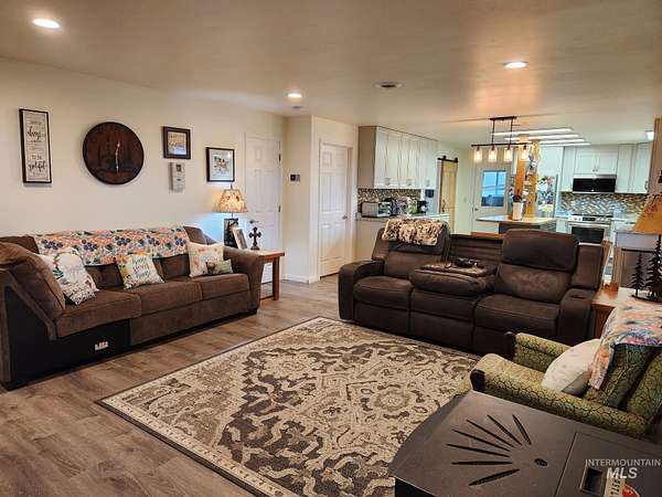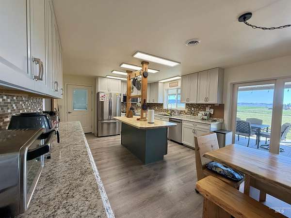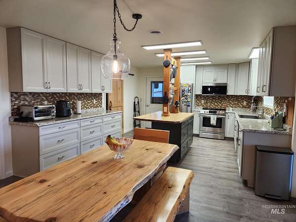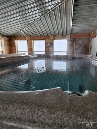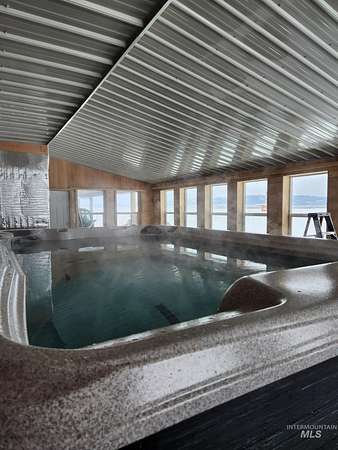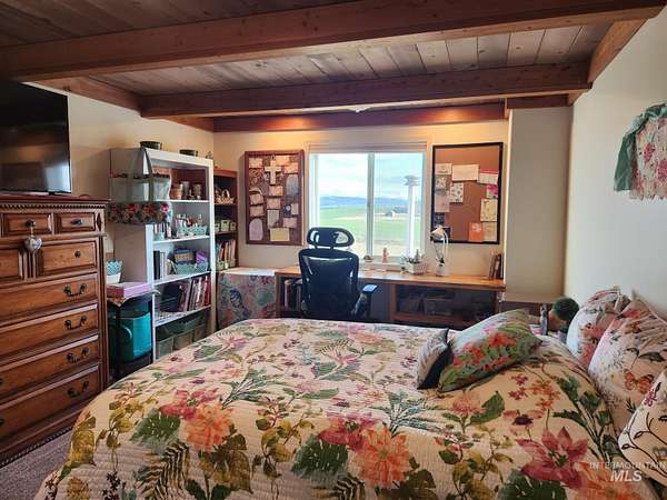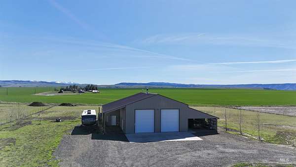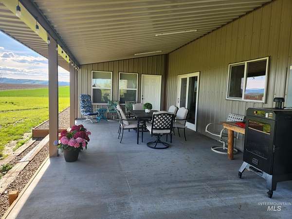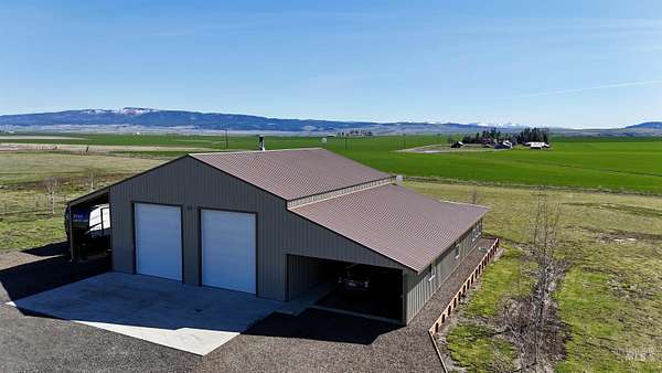 Custom-built in 2023, this beautifully crafted two-story home offers 2,490 sq ft of living space on 3 level acres just outside Grangeville, with stunning Camas Prairie views and mountains in the distance. Featuring 3 bedrooms and 3 full baths, including two private suites-each with its own bath and pine beam ceilings-this home blends comfort with character. The open-concept living area flows into a bright sunroom with an oversized built-in swim spa, perfect for year-round enjoyment. Unique walls milled from Yosemite-sourced trees add warmth and charm. Efficient heating includes an electric furnace with heat pump and a pellet stove with thermal mass heater. Enjoy a covered concrete patio with built-in pizza oven-ideal for entertaining. Property includes a 50 amp RV hookup, shared 40 GPM well, and space for animals or expansion. Attached 1,200 sq ft shop/garage with two 12'x14' doors, plus a 20 x 46 carport on the west side of the house and a 12 x 30 carport on the east side of the house. Also features a 24 x 40 barn, fruit trees, frost-free spigots, and French drain. No HOA-move-in ready with room to grow.