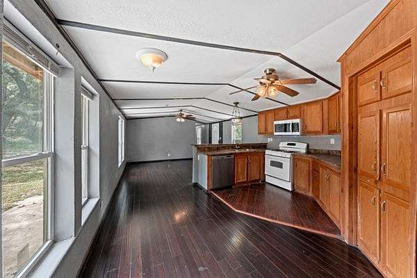 Est $1,658/moSecluded 3BD 2 Ba Mobile on 3.54 acres with a work shop. Metal roof two years old, 2 x 6 walls with extra insulation, wood floors and everything gas.