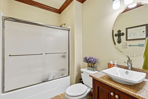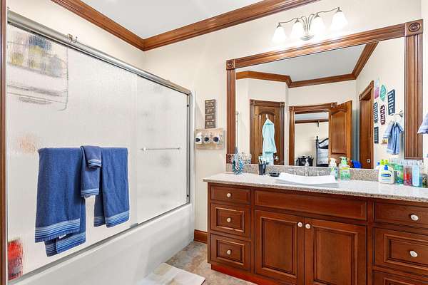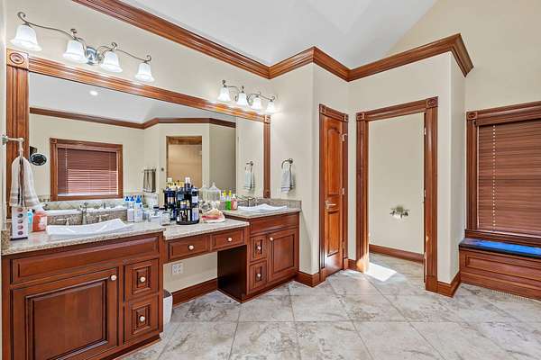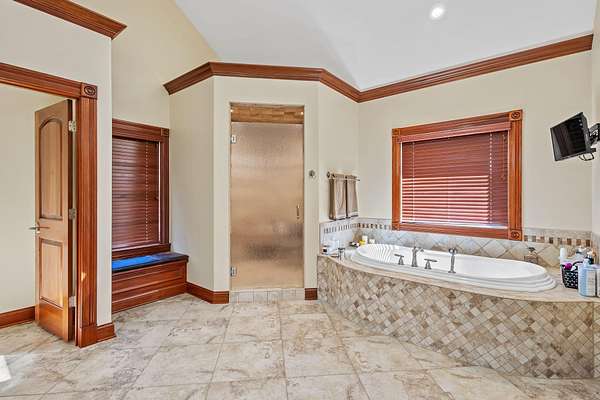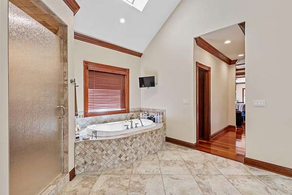 - Cathedral Ceiling(s), Ceiling Fan(s), Country Kitchen, Crown Molding, Double Vanity, Eat-In Kitchen, Entrance Foyer, His and Hers Closets, In-Law Floorplan, Open Floorplan, Recessed Lighting, Soaking Tub, Stone Counters, Tray Ceiling(s), Vaulted Ceiling(s), Walk-In Closet(s)