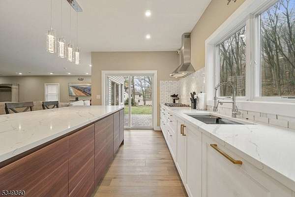 Set on 2 acres, this newly built luxury home offers nearly 6,000 sq ft of elegant living. A grand foyer with soaring ceilings welcomes you into a sunlit living room overlooking the private backyard. The open layout includes a chic dining area and a modern eat-in kitchen with pristine white cabinetry, Bosch & Frigidaire stainless steel appliances, and patio access. A powder room, great room with fireplace, and junior suite complete the first floor. Upstairs features three additional junior suites with en-suite baths, a rec area, laundry room, and a showstopping primary suite with dual walk-ins and a spa-inspired bath, boasting a soaking tub and oversized dual shower. Located just an hour from NYC and PA in one of NJ?s top-rated school districts, this home is a serene retreat for nature lovers seeking sophistication.