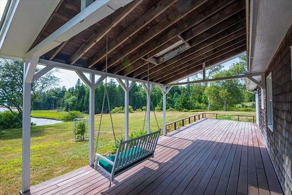 Discover Mill Creek Cottage: Watch the Mill Creek rise and fall from this private 1.92± acre property with 200'± of waterfront on Mill Creek, offering stunning views of Broad Cove and Gilkey Harbor. This year-round, 3-bedroom, 2-full-bath, cedar-shingled, cape-style cottage is elevated above Mill Creek, with a commanding view over the water. The property welcomes you with a long driveway that leads your eyes to a scenic waterfront. Conservation land frames the right side of the view, protecting it in perpetuity. The western exposure provides stunning sunsets. Interior highlights include a spacious first-floor primary bedroom with an adjacent full bathroom and a comfortable living room with a wood-burning stove. Outside, an open deck and a covered porch are ideal for seasonal enjoyment, and a detached garage is off the driveway. There is a new storm door, and most of the rooms have freshly primed or painted walls and ceilings. The property is close to the ferry and downtown Islesboro activities. Stay connected with fiber-optic broadband internet with 1 gigabit connection speeds. Islesboro is a 20-minute ride from the mainland town of Lincolnville, accessed by a public car ferry, water taxi, private boat, or small airplane. Proudly presented by Virginia (Ginnie) Hess | Cates Real Estate | | |