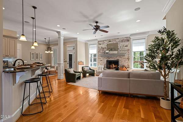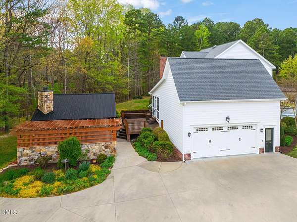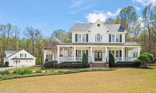 Welcome to a truly one-of-a-kind luxury estate in Portofino, where space, privacy, and exceptional design come together on a rare 3.57-acre wooded cul-de-sac lot with direct access to walking trails. This custom home makes an unforgettable first impression with its wraparound rocking chair front porch and stunning curb appeal. Inside, you'll find thoughtfully designed living spaces anchored by three indoor fireplaces and a layout that blends elegance with everyday comfort. The first-floor owner's suite offers a private retreat with direct access to an incredible outdoor living area featuring a full outdoor kitchen, expansive entertaining space, hot tub, and a show-stopping outdoor fireplace. The gourmet kitchen is designed for gathering, while the property's unique detached garage, with separate fenced area and a private apartment-complete with its own kitchen and bath- offers unmatched flexibility for guests, multigenerational living, or a dedicated studio or workspace. In addition to the homes 4 garage bays, there is a 5th bay in back for your golf cart, lawn mower or additional hobby space! Opportunities like this are rare, a home that combines acreage, luxury, and versatility in one exceptional property.