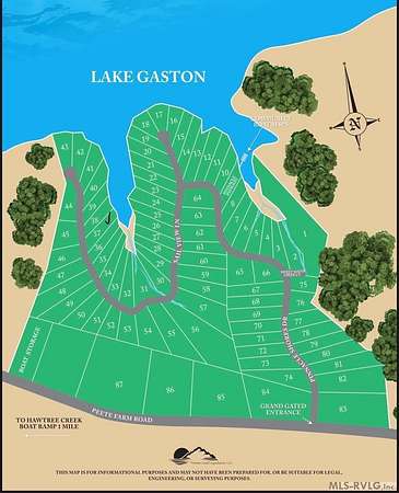 Waterfront lot in a small main lake cove in upscale neighborhood at beautiful Lake Gaston. Pinnacle Shores is booming with new custom built homes and boat docks under construction. The subdivision offers a sheltered pavilion and day docks. There is a separate storage area for your boat trailers, RV's, etc. The lot is located 2 miles from the public Hawtree Creek Boat Ramp with no bridges to go under to get to main lake. Also with county water there is no expense of digging a well. Come and build your dream home or 2nd home on the water and launch your kayak, paddle board or small fishing boat from your back yard that has over 100 feet of waterfront. Developer advertised the lot as dockable, but buyer would need to verify with Dominion regarding boat dock. Seller is willing to apply for permit during due diligence. The cove was dredged February 2025! Waterfront is marked with green flagging.