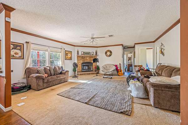 As-Is, Where Is. Step inside to discover a spacious, light-filled kitchen, complete with abundant counter space, a generous breakfast peninsula, and room to gather for morning coffee or evening conversation. The open living and dining areas create a welcoming flow for entertaining or simply relaxing at home. Cozy up by the wood-burning fireplace in the family room or enjoy the flexibility of two separate living spaces ideal for hosting, hobbies, or creating a private retreat for guests. The primary suite is a true standout, featuring an expansive walk-in closet large enough to accommodate even the most impressive wardrobe. With four bedrooms in total, this home provides space for everyone whether for family, guests, or a dedicated home office. A provides a covered back deck inviting you to unwind in the evenings while overlooking the above-ground pool. A perfect spot for summer gatherings and weekend fun. The spacious backyard is dotted with trees for added privacy, and includes two storage sheds, perfect for your next project or extra storage needs.