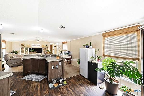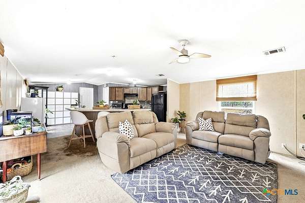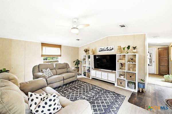 This well-maintained 3-bedroom, 2-bath single-wide home in Dale offers a rare opportunity with two separate lots and property ID numbers, giving you flexibility for future expansion, investment, or building on the additional lot. The home is clean and move-in ready, featuring laminate flooring in the main living areas and an abundance of natural light throughout. The kitchen offers plenty of cabinet space along with a convenient breakfast bar, making it both functional and inviting. A split floor plan provides added privacy, with the primary suite located on one side of the home. The ensuite bath includes a separate tub and shower, along with a walk-in closet. On the opposite side, two additional bedrooms share a full bath. Outside, the property is fully fenced and ideal for animals, recreational vehicles, or outdoor enjoyment. With no HOA or deed restrictions on record, you have the freedom to truly make this property your own. Enjoy the peaceful setting with mature trees and ample shade, all while benefiting from easy access to Austin, Lockhart, and ABIA.