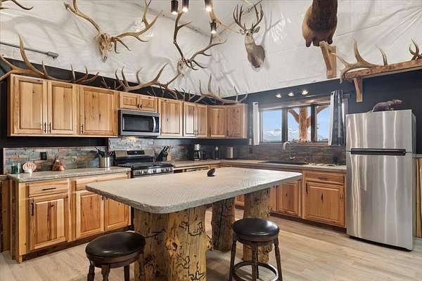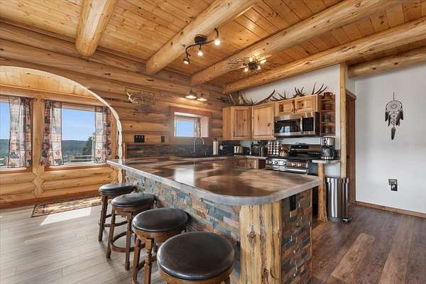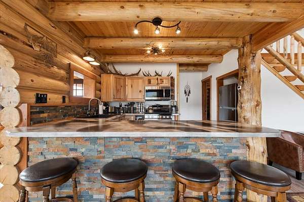 Welcome to a place where time slows down, the air feels cleaner, and every window frames a masterpiece. Set on 2.42 acres in the heart of Northwest Montana, this quintessential log home embodies everything buyers are searching for in a true Montana retreat. From the moment you arrive, the sweeping, unobstructed mountain views command your attention-creating a backdrop that is both inspiring and deeply peaceful. The home itself offers 1,256 square feet of thoughtfully designed living space, including one bedroom, one bath and a loft for additional sleeping or flex space. Inside, rich wood tones, vaulted ceilings, and expansive windows create a warm yet open atmosphere. Radiant floor heat ensures year-round comfort, while the propane fireplace adds both ambiance and charm.The kitchen and living areas flow seamlessly, making it easy to entertain or simply relax while taking in the surrounding beauty. Step outside onto the covered decks-an extension of the living space-perfect for morning coffee, evening gatherings, or quiet reflection. The hot tub invites you to unwind beneath Montana's star-filled skies. Beyond the home, the property continues to impress. A substantial 40x60 shop offers incredible versatility, complete with its own living quarters including a kitchen, bedroom, bathroom, & laundry. Shop boast radiant floor heat, wood stove, solar panels, wood working room, and two covered lean-tos for additional storage and workspace. There is productive orchard with apple, plum, pear, cherry trees, and grapevines. This is more than a property-it's a chance to reconnect, recharge, and truly experience Montana living.