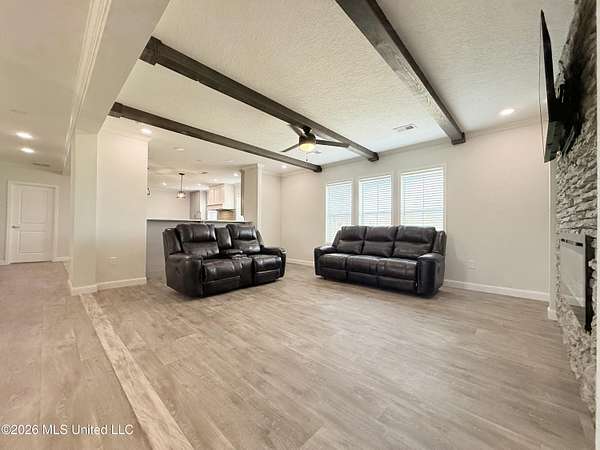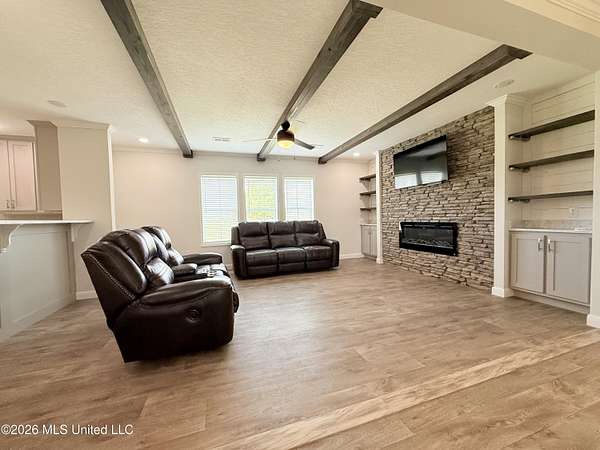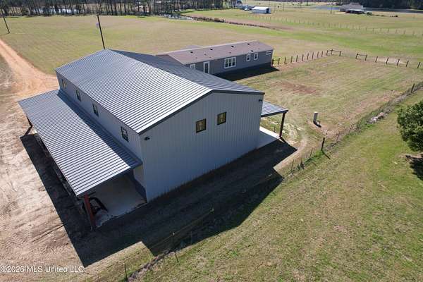 Nestled on a serene 21-acre parcel in the highly regarded West Lincoln School District, this meticulously crafted 2023 Sunshine manufactured home offers the perfect blend of modern luxury and rural tranquility in Lincoln County, Mississippi. Spanning approximately 2,432 sq ft, the 4-bedroom, 2-bath residence boasts an inviting open floor plan that seamlessly connects the living, dining, and kitchen areas--ideal for family gatherings and effortless entertaining. The gourmet kitchen shines with marble countertops, a striking granite island, abundant storage featuring soft-close drawers, matching stainless steel appliances, and convenient bartop seating looking into the kitchen from the living room. The expansive primary suite impresses with a massive walk-in closet and a spa-like bath complete with dual sinks, tile shower, garden tub, and hideaway commode, while the hall bath offers an oversized tub-shower combo and large vanity. Two spacious guest bedrooms feature walk-in closets, and the versatile fourth bedroom serves beautifully as a bedroom, craft room, or home office. The practical laundry area includes back door access for mudroom style access, space for an upright freezer, an oversized soaker sink, cabinets, and a hanging rod. Thoughtful upgrades include crown molding throughout, 9-foot ceilings, overhead ventilation, blinds on all windows, real home-style doors, and included washer and dryer. Complementing the home is a substantial 40' x 65' shop equipped with 12' insulated garage doors, plus dual 14' x 65' slabbed lean-tos on each side featuring soffited ceilings, recessed lighting, and outdoor fans--perfect for vehicles, equipment, projects, or shaded outdoor work. The shop's slab is pre-plumbed for a future bathroom addition or conversion to living quarters. The 21 acres of mostly open field include existing fencing and cross-fencing, ready for livestock, gardening, hay, or recreation, with scenic amenities including one pond along the road and a larger rear pond beautifully lined with cypress trees--ideal for fishing, wildlife, or peaceful views. Built with love as a cherished getaway, this move-in-ready property combines high-end finishes, practical outbuildings, and abundant private land for homesteaders, families, or anyone seeking space and serenity. Ideally located just north of McComb and just south of Brookhaven in Bogue Chitto, it offers easy access to nearby amenities while maintaining a peaceful, private retreat in southwest Mississippi. Don't miss this rare opportunity!