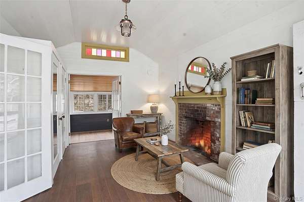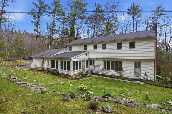 Welcome to The Waterfall House, a truly rare offering nestled in the heart of Woodstock Proper, where nature, creativity, and privacy converge in the most enchanting way. Being offered for the first time, this storied 3,023 sq ft brick colonial is more than a home; it's an experience, a retreat, and an open canvas for your vision to unfold. Set on nearly 12 acres of lush, mature landscape, the property invites you to slow down and reconnect. Inside, you'll find expansive, light-filled living spaces, six legal bedrooms, and three and a half bathrooms, each room waiting to be reimagined into something extraordinary. The sun-drenched rear room is where the magic truly begins. Walls of windows blur the line between indoors and out, immersing you in the sights and sounds of nature. Open the windows and let the rhythm of your private waterfall and babbling brook become your daily soundtrack, equal parts calming, inspiring, and unforgettable. Step outside into your own private woodland to explore, create, or simply unwind. Nearly 12 acres of this kind of privacy in Woodstock Proper is a rare offering. The sweet soul of this property are two charming artist cabins, each offering one bedroom and one full bathroom, perched right along the water's edge, with one cabin offering 885 square feet and the other 740 square feet. Once home to local creatives, these cabins carry a palpable energy, perfect for studios, guest retreats, or a continuation of their artistic legacy. This is not just a home, it's a place for visionaries, nature lovers, and those seeking something deeply special. A once-in-a-lifetime opportunity to own a property that feels both grounded and magical, private yet inspiring, where every day begins and ends with the sound of water and the beauty of the land, an experience that feels worlds away, yet right at home.