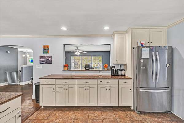 Charming brick home on 2.68 acres that features one-level living, spacious floor plan, 3 bedroom, 2 bathrooms, and privacy! This home boasts beautiful wood floors that flow throughout with ceramic tile in the kitchen, part of the family room, and both bathrooms. Laminate flooring is in one of the bedrooms and part of the family room. The huge kitchen offers an abundance of cabinetry and is partially open to the living room. Additional features include 2 masonry fireplaces, an unfinished basement with possibilities for a rec room, workshop or home gym. Exterior features include a covered front porch, brick patio, paved driveway and 2 car attached garage.