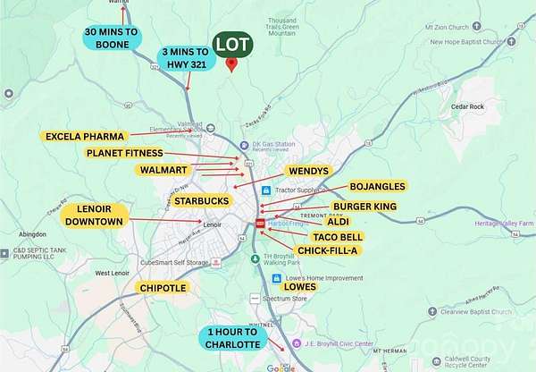 Discover the perfect blend of privacy, convenience, and developer's opportunity with this expansive 36.57-acre parcel. Located just outside the Lenoir city limits with only 1.5 miles from Hwy 321. Zoned RR ( Rural Residential) this property offers approx. 1,400 feet of road frontage, making it highly accessible for various uses like single-family homes, modular homes, double-wides, group home facility and potential for rezone to commercial. It has access to city water. Septic needs to be installed, however city sewer is located just 600 meters away. Ready to be subdivided with only 15,000 sqft of min. lot requirement for SFH and 18,000 sqft for duplex. The land is partially cleared at the front, with varying slopes in the back and a peaceful creek on the NE corner.Just 30 mins from Blowing Rock, Boone and 1 hour to charlotte airport. Min. lot setbacks information is available on request. Look for Parcel-ID 09166 1 11A to look up on GIS.