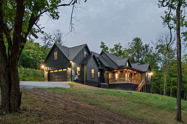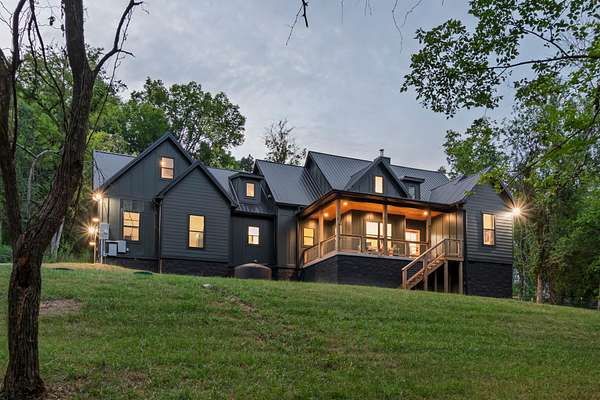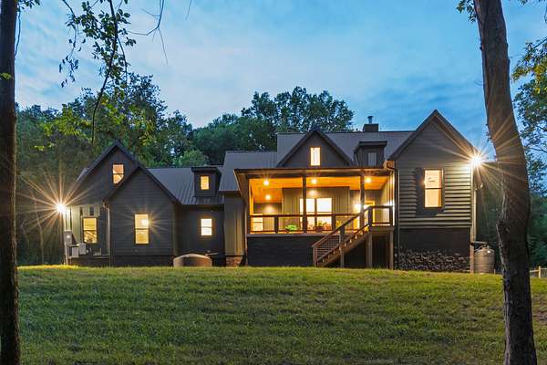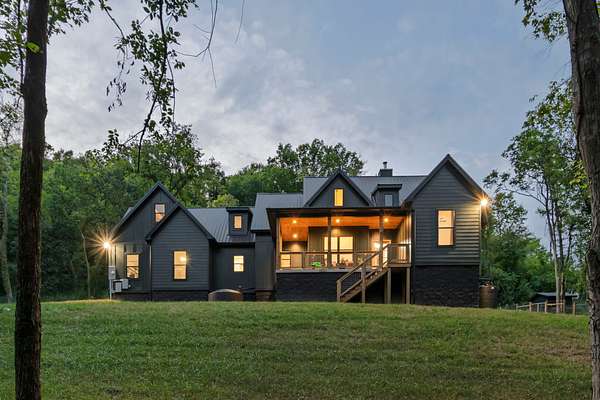 Where elegance meets endurance. Thirty-one acres rise out of Middle Tennessee's wooded hills, embracing a modern farmhouse whose moody green facade blends seamlessly into its forested backdrop, while bright maple interiors glow with warmth. Vaulted ceilings, a chef's stone-accented kitchen, and a spacious bonus room reflect artisan-level craftsmanship at every turn.