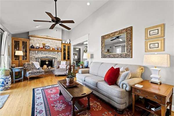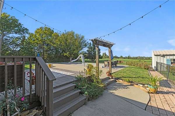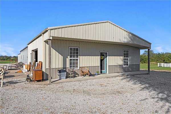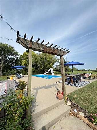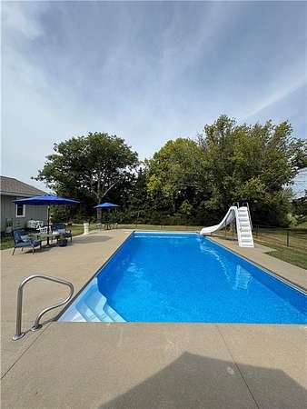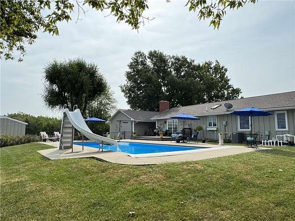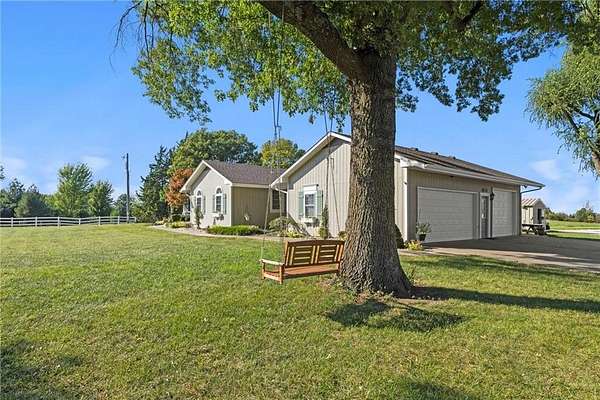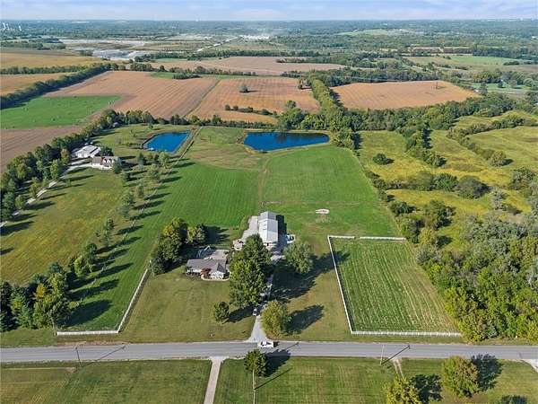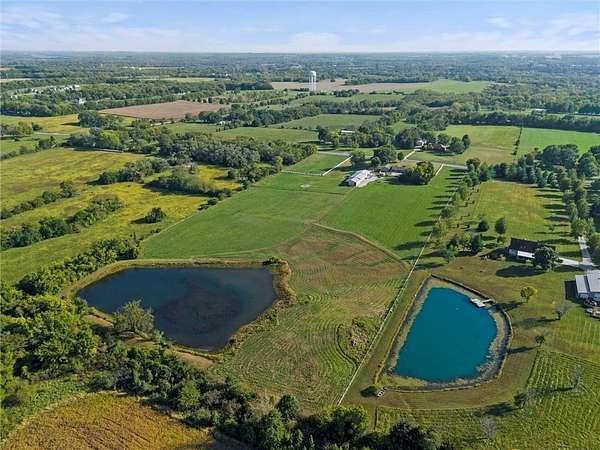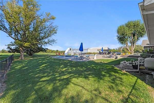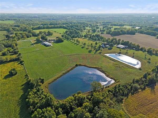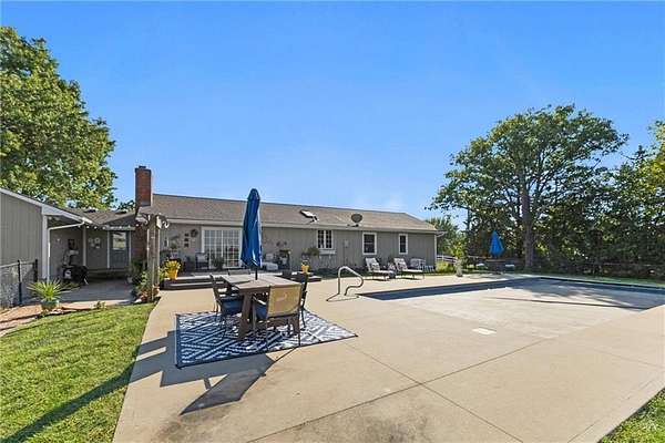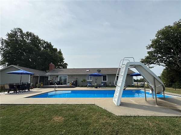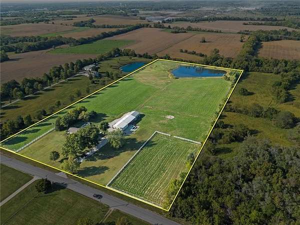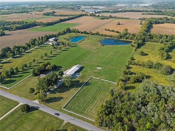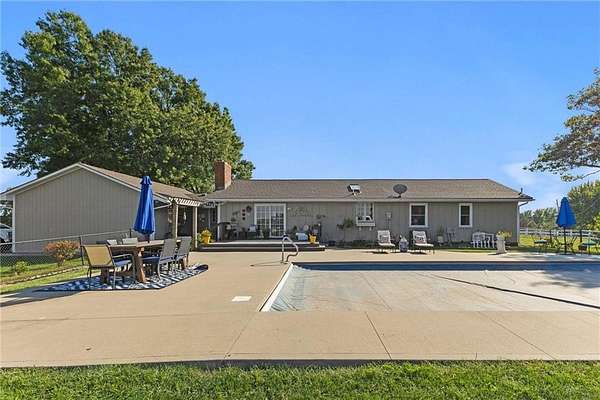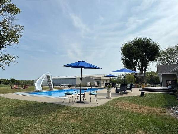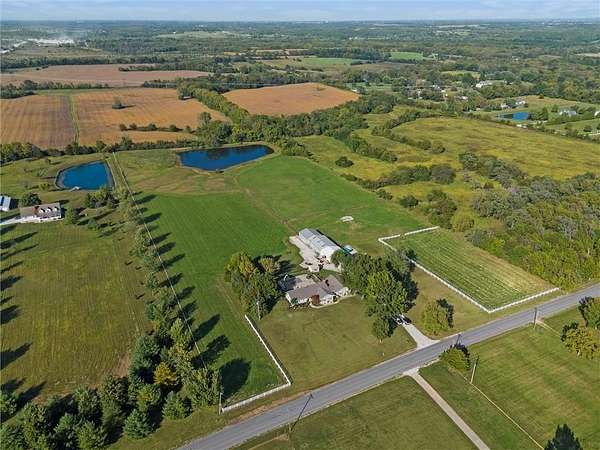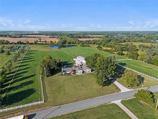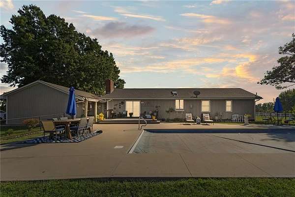 Experience the perfect blend of country charm and modern comfort on this 15+ acre estate, ideally located just off blacktop east of 291 Hwy South. The beautifully updated ranch-style home features light-filled living spaces, vaulted ceilings, and a cozy brick fireplace that creates a warm and inviting atmosphere. The open kitchen showcases granite countertops, natural wood cabinetry, stainless steel appliances, and a breakfast island with views of the scenic acreage beyond. Step outside to your private oasis - an in-ground pool with retractable cover, slide, and expansive patio ideal for entertaining or relaxing under the Missouri sky. The property is fenced and thoughtfully set up for livestock, complete with automatic waterers to four pasture areas, a large barn with concrete floors, workshop space, and four stalls. Enjoy peaceful evenings around the built-in fire pit, tend to your garden, or fish from your stocked pond surrounded by beautiful open views. Whether you're bringing horses, cattle, or ATVs, this property delivers the space and versatility for your country lifestyle - all just minutes from Pleasant Hill, Lee's Summit, and the conveniences of the city. Highlights:15+ Level Acres with Fencing & Water AccessUpdated Ranch Home with Open FloorplanIn-ground Pool with Retractable Cover & SlideLarge Barn with Workshop, Concrete Floors, & StallsStocked Pond, Garden, Fire Pit & Outdoor Living SpaceBlacktop Frontage, Minutes to 291 Hwy & Pleasant Hill Schools