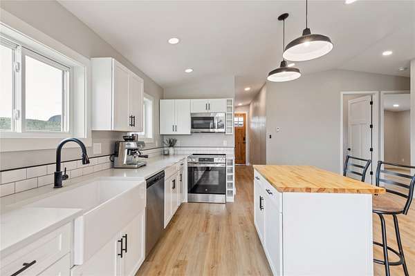 Seller offering $10,000 towards closing costs or rate buydown. Welcome to a stunning blend of modern design and natural beauty in this newly renovated Montana retreat. Vaulted ceilings and oversized windows flood the interior with natural light and frame sweeping lake and mountain views. Located just minutes from Flathead Lake, Lake Mary Ronan, and Blacktail Mountain Ski Area, this property puts world-class outdoor recreation right at your doorstep. Inside, the contemporary living space features 3 bed, 2 bath and a spacious open-concept layout. The kitchen is both stylish and functional with soft-close cabinetry, a farmhouse-style sink, and sleek modern finishes. Enjoy brand-new doors, windows, and flooring throughout. Comfort is ensured year-round with in-floor radiant heat & a mini-split system. Step outside onto the expansive deck-perfect for morning coffee, evening sunsets, or simply soaking in the panoramic views that surround you. Park your RV on the RV pad with 30amp, 50amp and 110v outlet while enjoying the lake and mountain views. Step outside onto the expansive deck-perfect for morning coffee, evening sunsets, or simply soaking in the panoramic views with Flathead Lake. With an existing well and septic system already installed, this property offers flexibility for future expansion. Just 30 minutes from Kalispell-one of Montana's fastest-growing cities with an international airport, top-tier healthcare, shopping, and dining-this home offers the perfect balance of privacy, modern comfort, and access to every amenity. Don't miss your chance to own this exceptional property in the heart of the Treasure State. Two additional lots for sale for a total of 19.1 Acres- MLS#30061012 and MLS#30061013