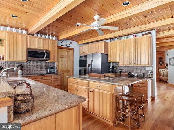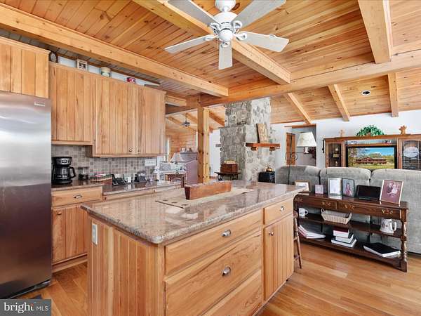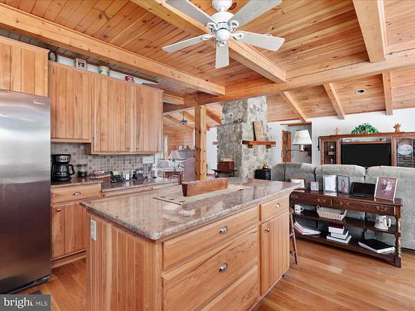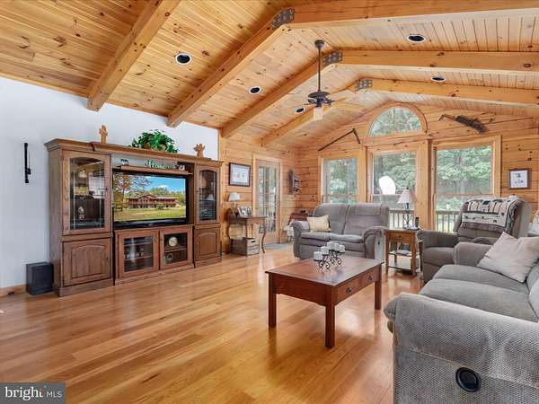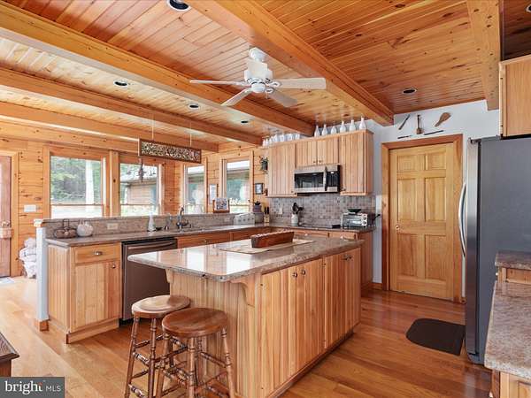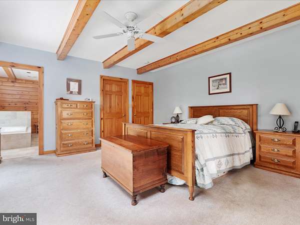 - Carpet, Ceiling Fan(s), Entry Level Bedroom, Exposed Beams, Family Room Off Kitchen, Formal/Separate Dining Room, Island Kitchen, Open Floor Plan, Pantry, Primary Bath(s), Recessed Lighting, Upgraded Countertops, Walk-In Closet(s), Water Treat System, Wet/Dry Bar, Window Treatments, Wood Floors