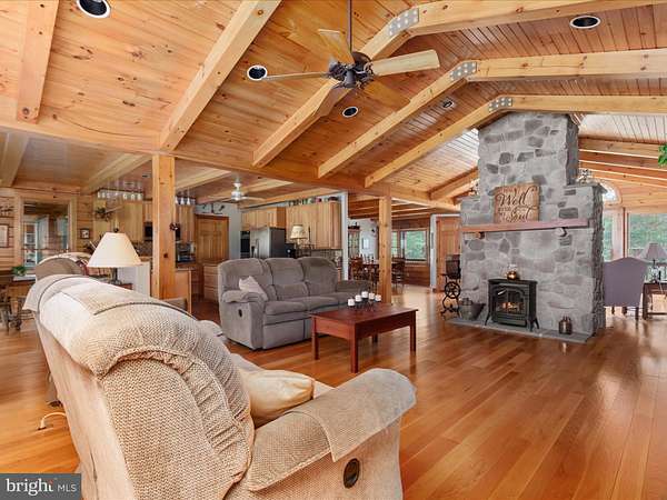 Escape to your own private retreat! This custom log home on 21 wooded acres offers space, comfort, and endless outdoor enjoyment-without the restrictions of an HOA. Featuring over 3,200 sq. ft. on the main level plus 1,600+ finished sq. ft. in the walkout basement, this home provides room for everyone. Inside, you'll find 4 bedrooms, 3 1/2 baths, and 2 fireplaces, along with an outdoor wood furnace for efficient heating. The lower level is an entertainer's dream with a wall of windows, bar area, huge recreation room (pool & ping pong tables convey), a full bedroom and bath-ideal as an in-law suite or guest space. Step outside to enjoy the beauty of the land with two ponds (one stocked with bass), wooded trails, and plenty of space to explore. Car enthusiasts and hobbyists will love the abundance of garage space: two attached garages plus a detached 3+ car garage with oversized door-perfect for RVs, boats, or equipment. A rare opportunity to own a property that truly has it all-privacy, recreation, and a stunning log home to match. PLEASE NO DRIVEBYS Property is in forest perserve - it was renewed in 2023 - renews every 10 years, so taxes are low.