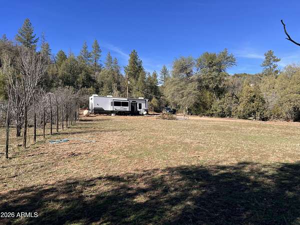 Discover Your Dream Escape in Geronimo Estates! Nestled at the serene end of Munsee Drive, this approx 2 acre lot is the hidden gem you've been searching for with a seasonal creek at the back of the property and National Forest to the east this not only offers tranquility and privacy. With no HOA to cramp your style, this land is a blank canvas for your dream home or a peaceful getaway cabin. The terrain is flat and ready for your immediate construction plans, 5th wheel. This lot has septic, electric and a well. Everything you need for your dream escape. 5th wheel on property can be purchased through separate bill of sale.