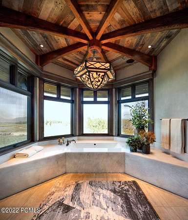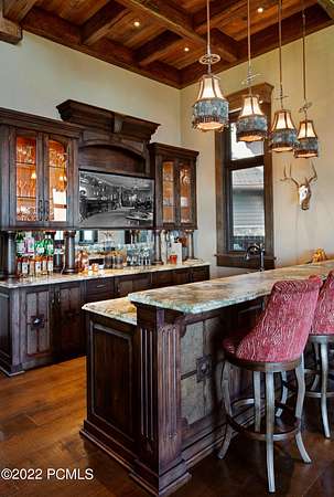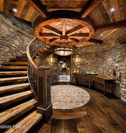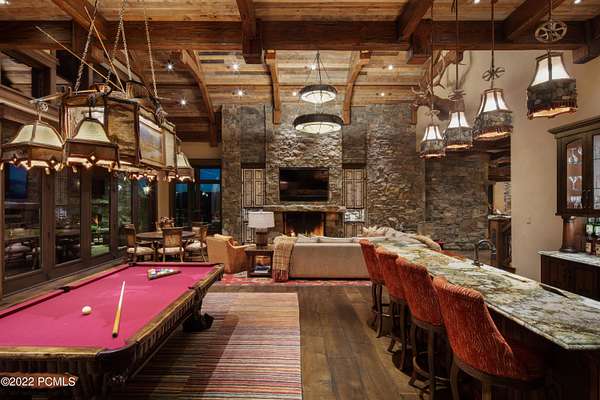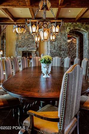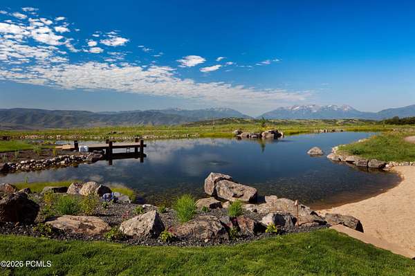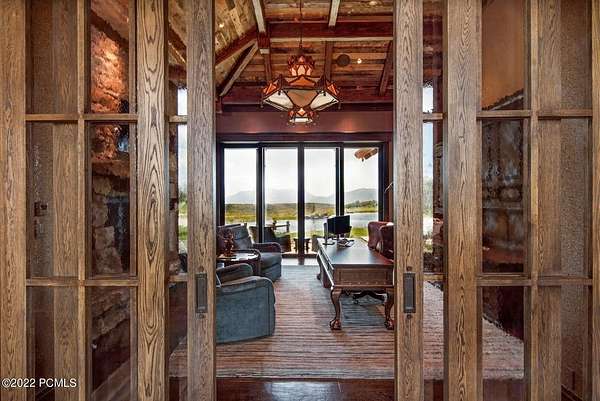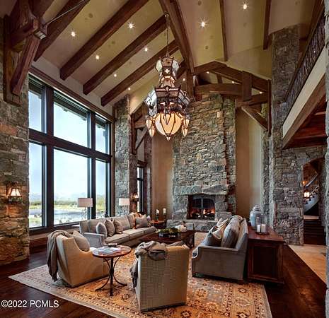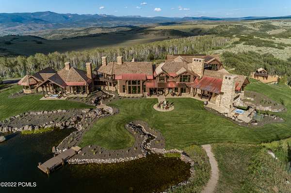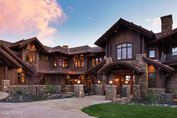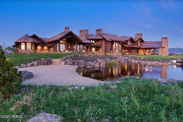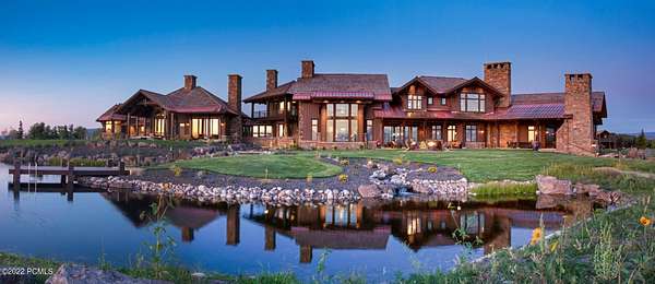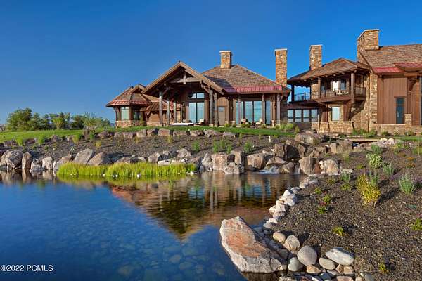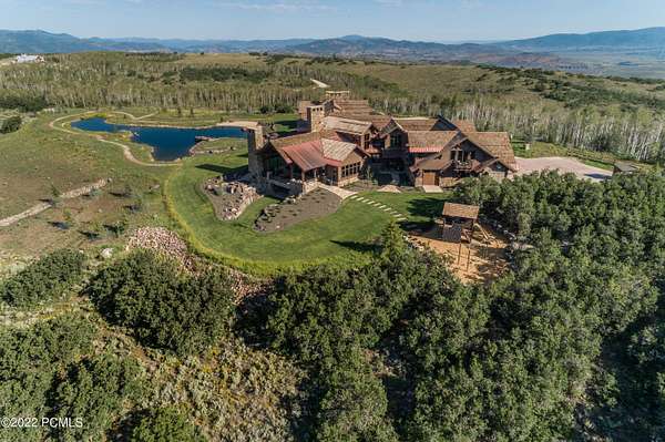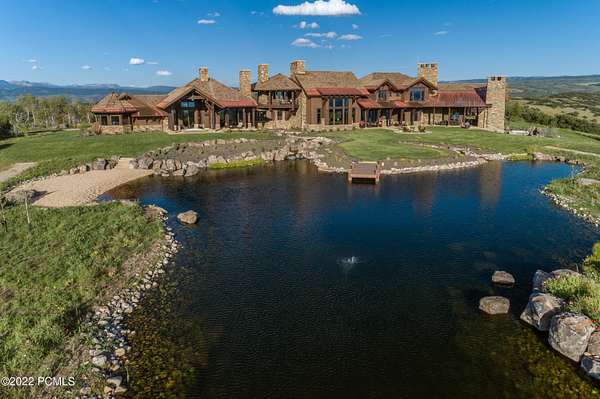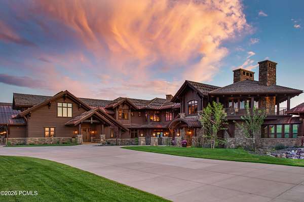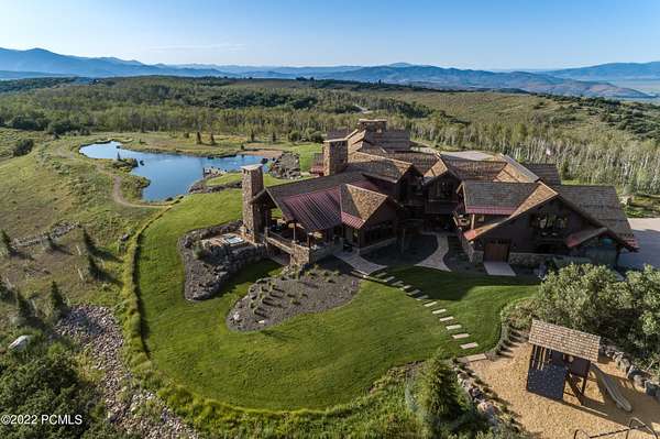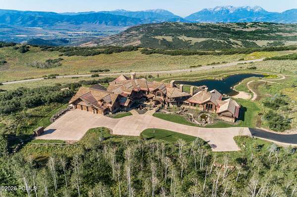 Timpanogos Ridge Estate is a rare opportunity to own a private 160-acre mountain retreat in one of Utah's most exclusive communities. Perched atop a commanding ridgeline, the estate captures sweeping views of Mount Timpanogos, the Heber Valley, and surrounding mountains. Evenings are defined by alpenglow skies reflecting across a private swimmable pond with sandy beach and dock, creating a setting that is both peaceful and unforgettable. The 17,500+ sq ft residence, built by Cameo Homes and designed by Paula Berg, showcases a level of craftsmanship rarely seen, hand-finished woodwork, custom iron detailing, and thoughtfully designed spaces that balance scale with warmth. Grand living areas and seamless indoor-outdoor transitions create an effortless environment for entertaining and everyday living. Outdoor living is at the heart of the property, with multiple patios, fire features, outdoor kitchens, and expansive lawns, all connected to over 60 miles of private trails that invite year-round adventure directly from your doorstep. Located within the gates of Wolf Creek Ranch, just 25 minutes to Deer Valley's East Village, the estate offers a rare balance of complete privacy and convenient access to world-class recreation.
