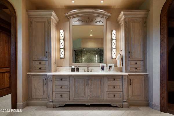 - 9 ft Plus Ceiling(s), Double Vanity, Main Level Master Bedroom, Pantry, Sauna, Spa/Hot Tub, Steam Room/Shower, Vaulted Ceiling(s), Walk-In Closet(s), Wet Bar