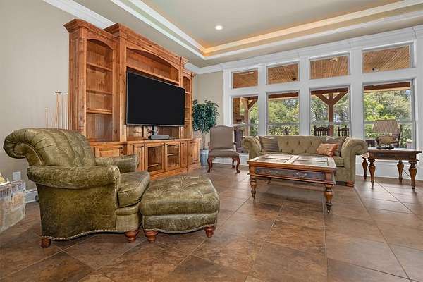 Located in the highly sought after Stallion Lake Ranch community, this custom home spans 3,050 sq ft on a generous 8-acre lot. The open-concept main living area boasts a warm stone fireplace and rich wood flooring, creating an inviting space for family living and entertaining. A chef's kitchen, complete with a spacious island, stainless steel appliances and custom cabinetry flows seamlessly into the great room and breakfast nook. Off the foyer a beautiful office with tons of natural light is the perfect place to work from home. The primary suite is a peaceful retreat with beautiful views, a spa-inspired ensuite, and ample closet space. The two additional bedrooms and bathroom are spacious for the whole family, plus a convenient half-bath for guests. A oversized two-car garage provides secure parking and storage, while the sweeping acreage includes a covered back patio with fireplace and terrace ideal for sunset gatherings. The large shop is the perfect place for your projects or even a home gym! Stallion Lake Ranch offers communal horse facilities, paddocks, and scenic lake access, catering to equestrian lifestyles and active families alike. With proximity to Van, Lindale, and Tyler with easy access to Dallas, it's the epitome of serene East Texas country living. This ranch-style gem combines rustic charm with upscale features for a refined yet relaxed lifestyle in Van ISD.