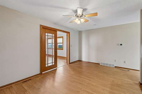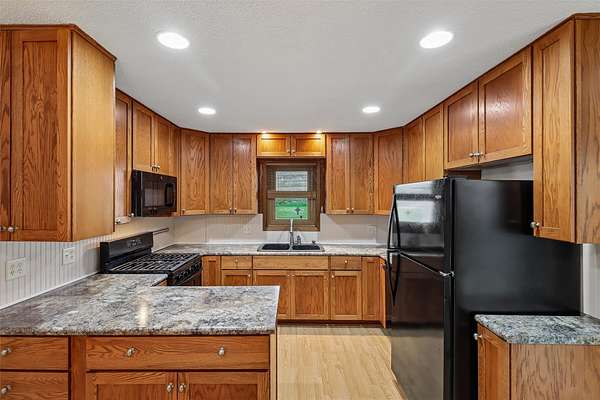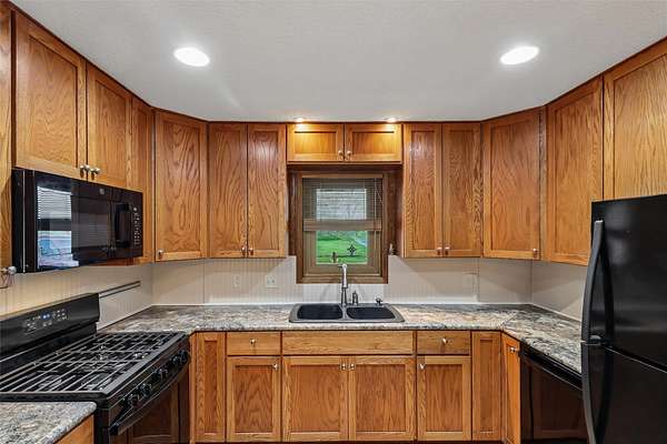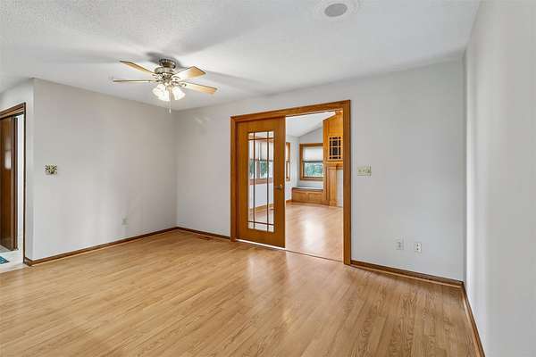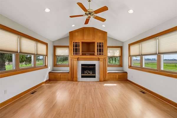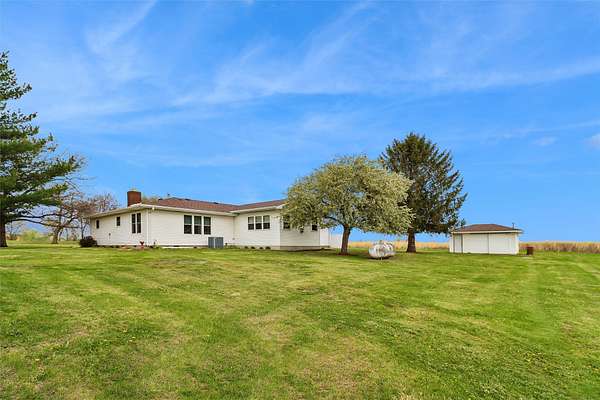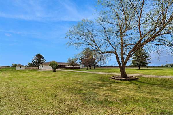 Do you want to be country but yet close to town area on highway? Try this beautiful ranch, sitting on 2 acres, this is such a lovely home with a 32x42 building, 14x20 shed. Home is 2024 square feet on main floor and 775 finish in basement area. A warm inviting slate entry takes you to a large formal living room, a fantastic 4 season family room with fireplace and built ins on each side with blanket storage chest on each, great French doors to close for privacy. All oak wood and so many wonderful windows for light. The dining room leads to warm mission style kitchen and all appliances staying. A 3/4 bath is found in hallway leading to laundry and oversized 2 car garage. 3 good size bedrooms and full bath with soaker tub. Finish this floor with amazing extra storage. An open staircase takes you to the large basement of 1448 sq feet which has 775 SF finished. A rec room with a brick fireplace and 2 rooms that are non conforming which could be a gym room or office area. Mechanicals are all down here in excellent shape in their own room with a sink. It can be a second laundry. Roof on home is only 4 years old. Water heater and furnace and central air all less than 10 years. New septic is being installed. Central vac. Large building has gas heater and 12x12 overhead door. Wonderful school district, Interstate 35.