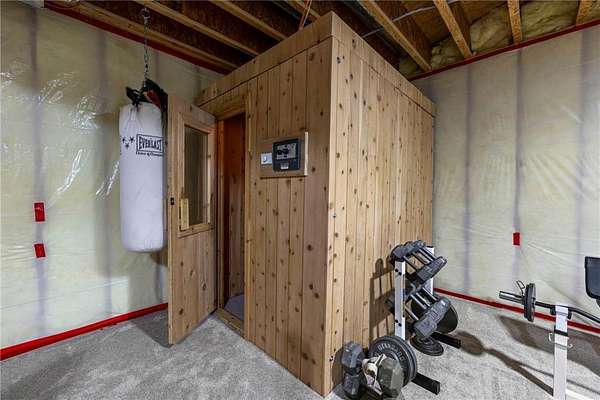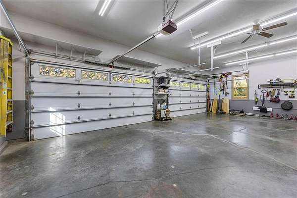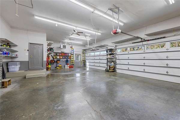 Roomy Heated Garage: Fits four cars, has 12-foot ceilings, insulated doors, and extra attic storage.
