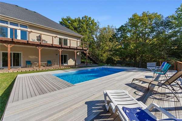 Backyard Fun: Above-ground pool with a big deck, plus a firepit in the woods for cozy evenings under the stars.