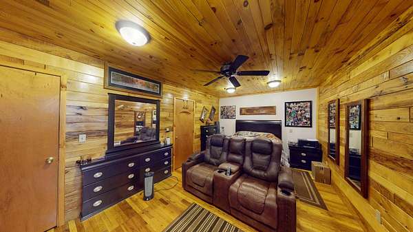 - Beamed Ceilings, Cedar Closets, Ceiling Fans, Country Kitchen, Entrance Foyer, Great Room, High Ceilings, Main Level Primary, Sitting Area In Master, Smart Cameras Recording, Utility Room