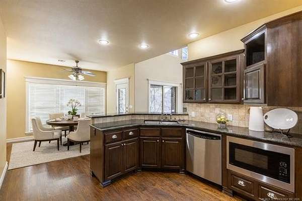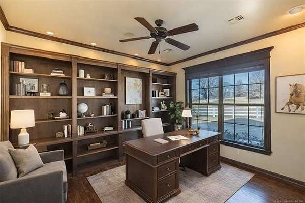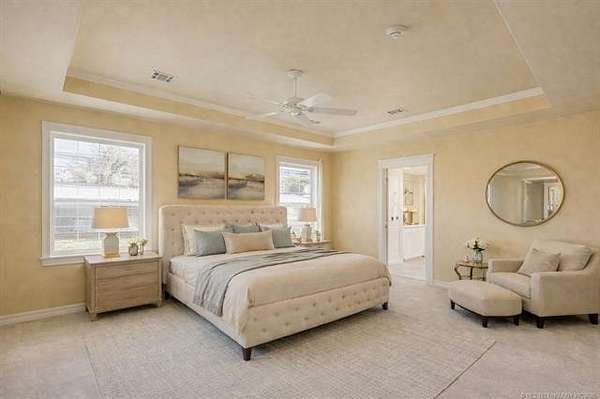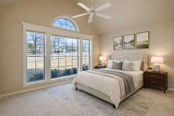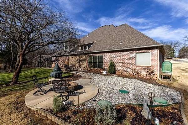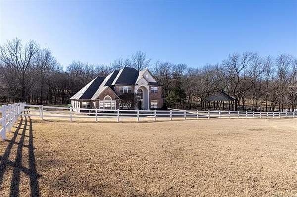 BACK ON THE MARKET DUE TO BUYER FINANCING. Welcome to your private retreat on nearly 4 acres-perfectly located within city limits yet just minutes from downtown Claremore, shopping, and dining. This stunning property offers the best of both worlds: peaceful country living with everyday convenience. Step inside to an inviting open-concept layout featuring a dramatic two-story living room filled with natural light and anchored by a cozy fireplace. A beautiful catwalk overlooks the main living space, adding architectural interest and a sense of grandeur. The heart of the home is the spacious kitchen, complete with granite countertops, walk in pantry, and ample cabinetry, making it ideal for entertaining and everyday living. The updated primary suite offers a true retreat with a beautifully renovated master bath designed for comfort and style. With 5 bedrooms, 3 and a 1/2 baths, multiple living areas, and flexible spaces including a beautiful home office with pastoral views, this home easily accommodates families, guests, or work-from-home needs. Outside, the property truly shines. Enjoy scenic views as the land backs to a creek with ample trees creating a private, peaceful space to enjoy the outdoors on your back deck that wraps around the home with a water fountain and firepit all beautifully highlighted with professionally designed and installed outdoor lighting. The open pasture includes a pond and white, vinyl fencing-perfect for animals. Equestrian enthusiasts will appreciate the horse barn and usable acreage. Additional highlights include: Nearly 4 acres of land Geothermal HVAC for energy efficiency 3-car garage + ample parking Outdoor space for entertaining and relaxing Carport with 50 amp hookup for RV parking New roof on house and barn in 2020 This rare property offers space, functionality, and charm-all in a highly desirable location. Furnishings/Decor generated by Ai