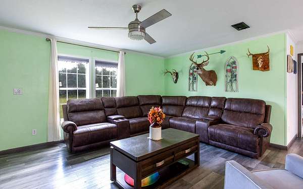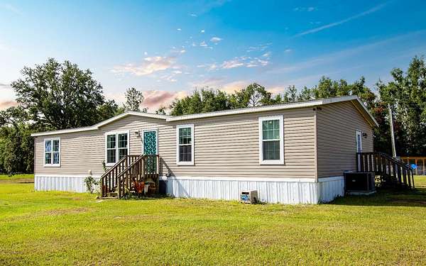Welcome home to peaceful living on 4.38 acres in Lee, Florida in Madison County! This spacious 2020 doublewide offers 1,860 sq ft of comfortable living space with 4 bedrooms and 2 full baths, featuring luxury vinyl plank flooring throughout most of the home. Seller is including extra LVP flooring if you want to finish the bedrooms! Enjoy the master suite with a walk-in closet and a roomy bathroom, plus a generous pantry and large laundry room. Step outside and enjoy the beauty of country life. Raise chickens or pigs with the existing chicken coop and hog pen, or just relax in your gorgeous open yard surrounded by peace and privacy. ALSO, A new metal roof has been added since pictures! Conveniently located 18 minutes to Madison Blue Springs State Park, 25 minutes to Live Oak, Florida, and 48 minutes to Valdosta, GA. Bring your animals, enjoy the fresh air, and embrace a laid-back lifestyle where you can truly breathe, grow, and live free.