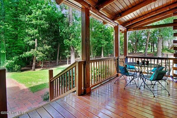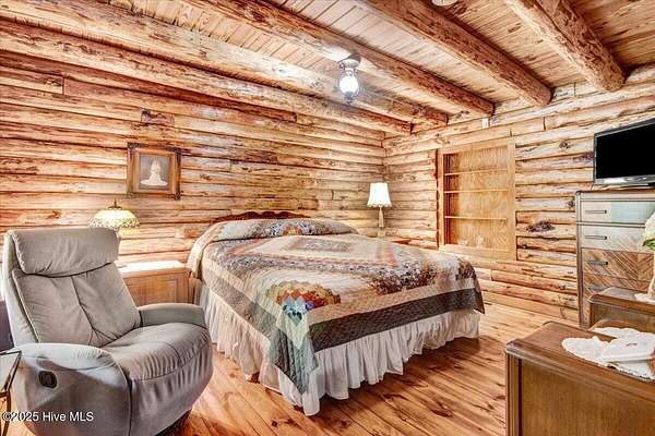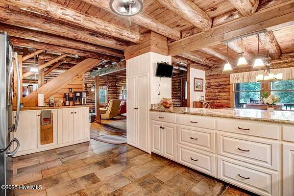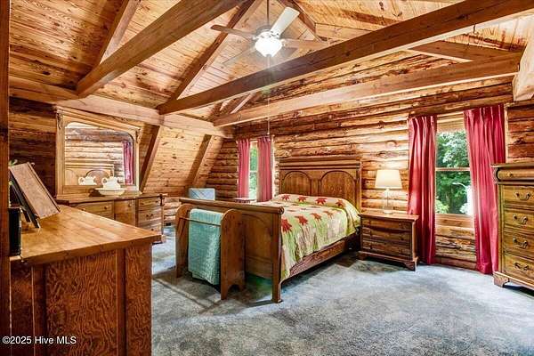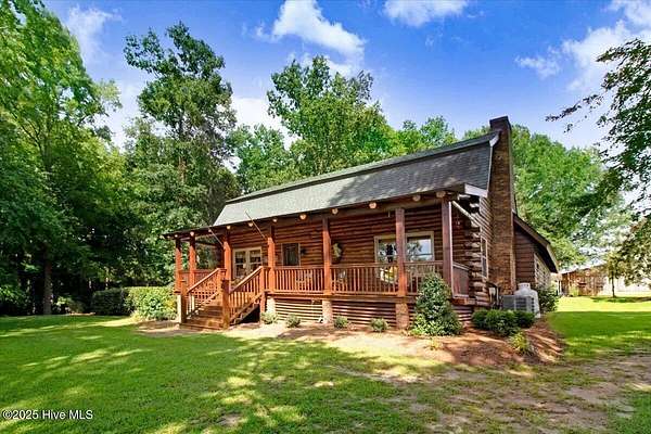 HOME INSPECTION ALREADY DONE! - Well-maintained log cabin nestled in the trees of a 5 acre tract just outside the city limits of Faison, NC. Boasts 3014 sq. ft. plus a 900 sq. ft. basement. Custom-built by the currently owners, this peaceful retreat offers a pond out front with a fountain and coy fish that each have their own name! It offers 3 bedrooms, 2 full baths and a additional 900 sq. ft. drive-out basement. There is plenty of wildlife to offer picturesque views all year long. Deer, squirrels, and all varieties of birds frequent this property. Also included is a huge barn with lots of potential for many uses. There is a large family room showered with natural sunlight. Enjoy your afternoons on the shady back patio with cover. This is a rare find. It won't last long. Call today for your private showing.