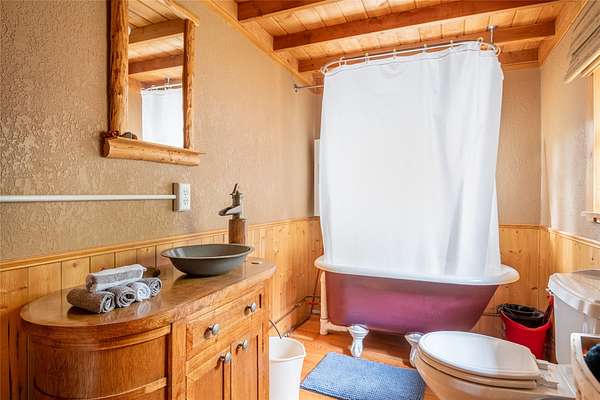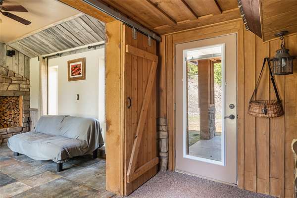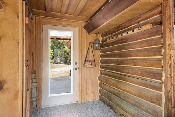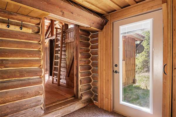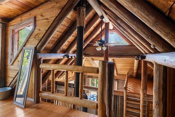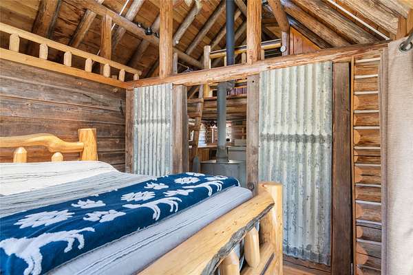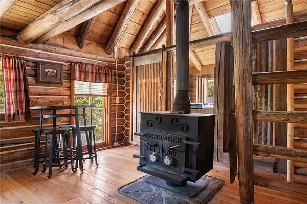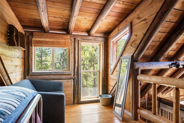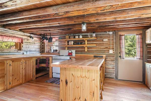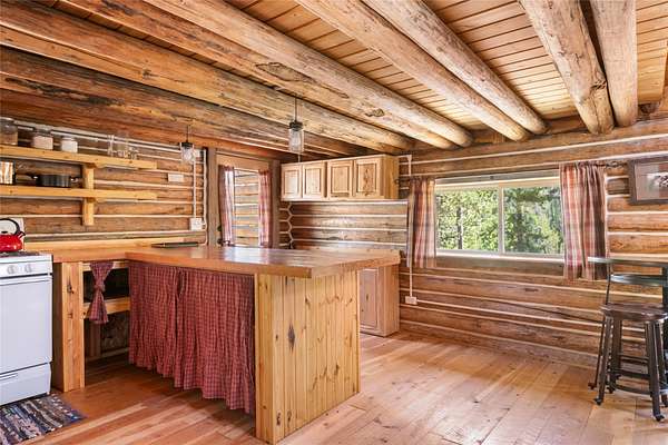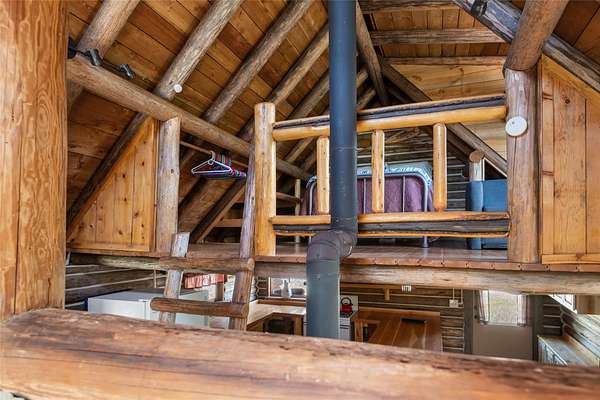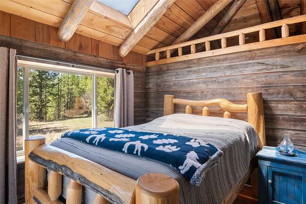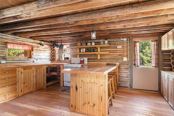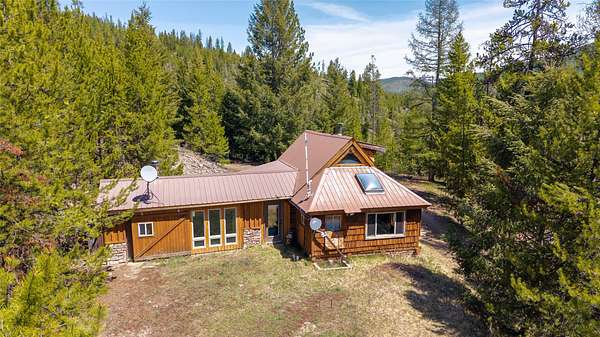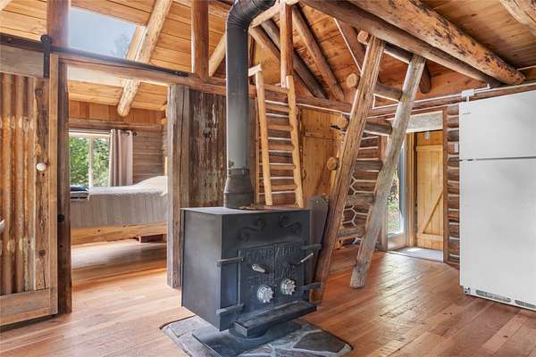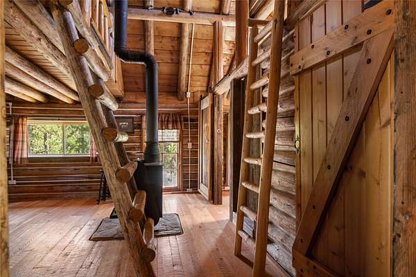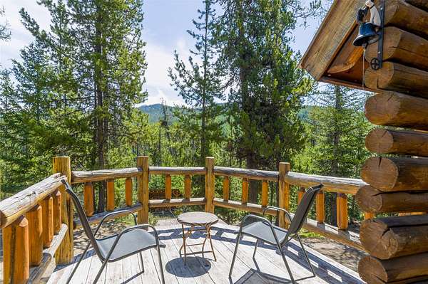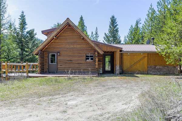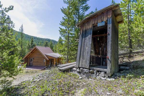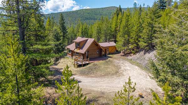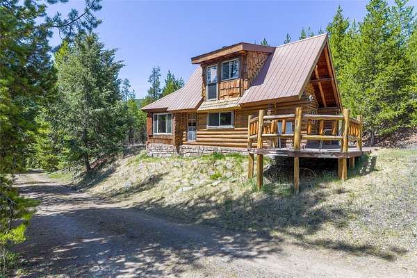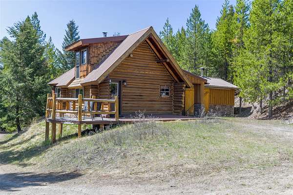 Find your peace at this secluded Montana log retreat, tucked behind a locked gate on 4.64 acres north of Frenchtown. Bordering thousands of acres of Forest Service land, this property offers a rare "off-grid" lifestyle with direct access to Mill Creek and unparalleled wilderness adventures right from your back door. Built in 1980, the well-maintained cabin features a primary suite on the main floor and two versatile loft sleeping areas above. The home is perfectly equipped for self-sufficient living with a propane range and fridge, on-demand hot water, and a 2500-gallon gravity-fed cistern. Large windows and a southern-facing deck capture stunning mountain views and abundant natural light, while a wood-burning fireplace and stove keep the interior cozy. Lockbox on the gate. Text listing agent for 1-day code and Onx Map waypoint before going as cell service is limited.