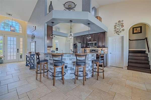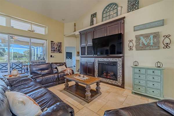 Step outside and unwind in your heated saltwater pool & spa with waterfall, all within a screened, oversized lanai with pavers perfect for year-round entertaining. Enjoy sunsets over the lake, launch a boat from your private dock, or use the community ramp for endless days on the water.