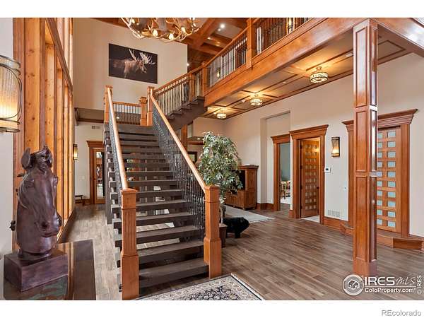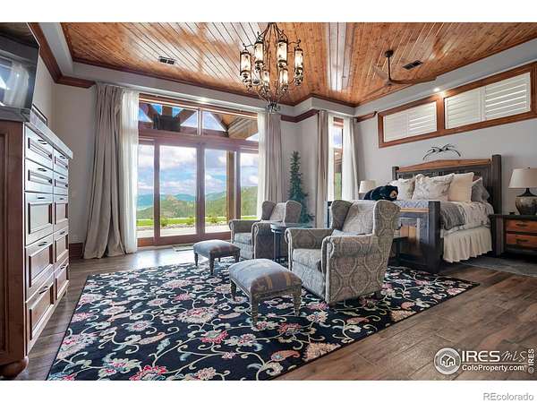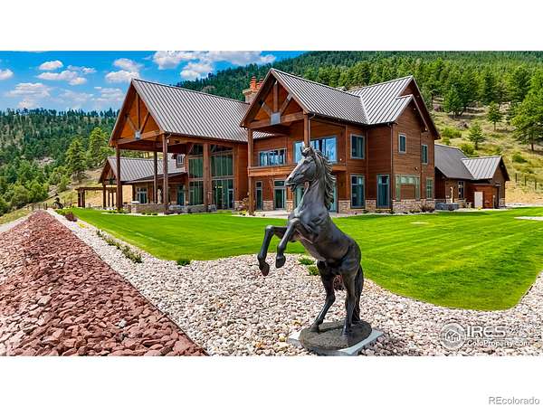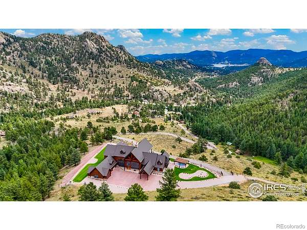 FRACTIONAL OWNERSHIP OPPORTUNITY. This offering is for 1/4 ownership interest in the property. Enjoy one-quarter usage of the home through a shared ownership agreement. Ideal for buyers seeking a part-time residence without the full cost & responsibility of sole ownership. Welcome to the Rocky Mountain Retreat, the epitome of luxurious living in a custom palatial residence perched atop Deer Mountain in the gorgeous town of Estes Park. Crafted with meticulous attention to detail, this exceptional estate boasts the finest materials & craftsmanship, showcasing exquisite Mountain Contemporary architecture. With soaring ceilings & grand spaces, every aspect of this home exudes opulence & sophistication. Upon entry you will be WOW'd by the 52' ceilings in the great room with massive windows framing sweeping mountain views, all the way to Lake Estes. Outside, a dual island outdoor kitchen is the centerpiece of the outdoor entertaining space, a large hot tub covered by pergola is a serene & picturesque setting. Step inside to discover a world of elegance & grandeur, with spacious living areas designed for both lavish entertaining & intimate gatherings. The gourmet kitchen, outfitted with top-of-the-line appliances, is a chef's dream. Retreat to the sumptuous primary suite, complete with a wet bar, gas fireplace, luxurious bathroom & patio access. Five additional bedrooms are all spacious & bright with outdoor access, walk-in closets & ensuite baths. Upstairs, the private study is outfitted with a wet bar, gas fireplace, wood panelling, & bath with steam shower. A private terrace makes the space an ideal getaway. Media room ensures that every comfort & convenience is catered to. On 68 acres, the utmost privacy & tranquility is realized only 10 minutes to Rocky Mountain National Park. With its idyllic location, impeccable craftsmanship, & unparalleled amenities, this mountain masterpiece offers a rare opportunity to experience the ultimate luxury living in Estes Park.