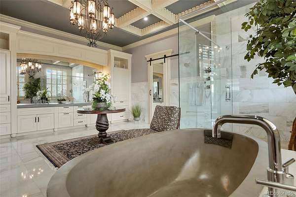 - Ceiling Fan(s), Eat-In Kitchen, Elevator, Entrance Foyer, Five Piece Bath, High Ceilings, Hot Tub, Kitchen Island, Marble Counters, Open Floorplan, Pantry, Primary Suite, Vaulted Ceiling(s), Walk-In Closet(s), Wet Bar