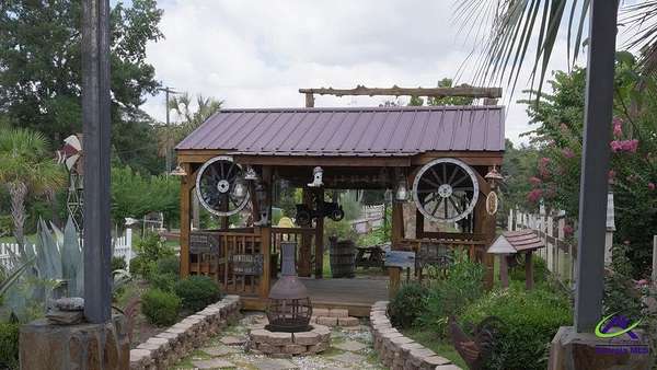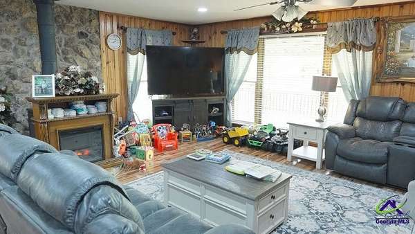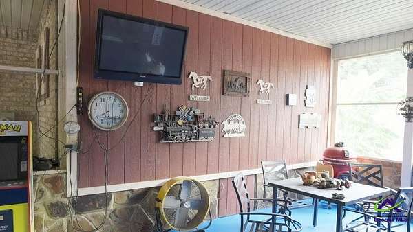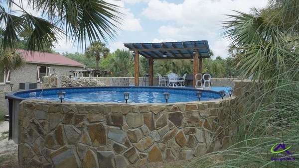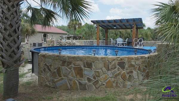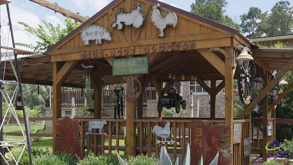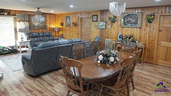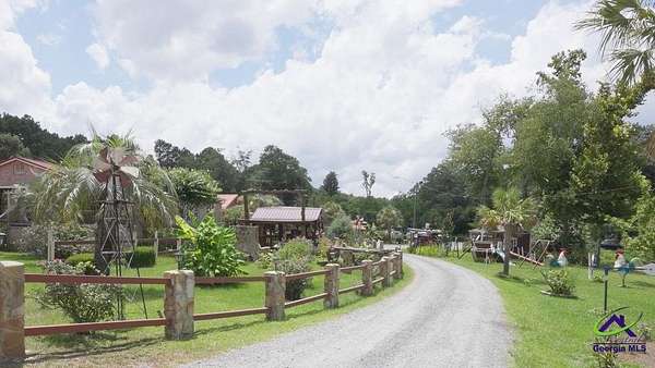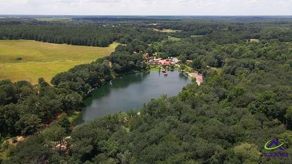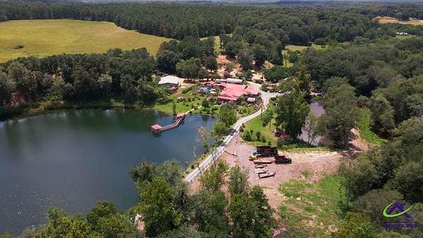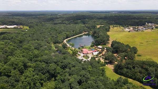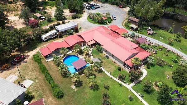 This beautiful 23.20 acre property radiates nothing but peaceful vibes. The 1,911 sq. ft. all brick ranch home is nestled in the rear of the property with spectacular views of the 5+ acre pond, beautiful landscaping and surrounding woodlands. You almost feel like your on your own private island with the serenity and privacy that the tropical landscaping and natural woodland border provides. Mossy Creek flows alongside the property which definitely adds to the peaceful and back to nature relaxed feel the property emanates. Entertaining is a must here with the spacious covered front and back porches, patios, pool and stone fire pit. A covered tile and cement deck seating area sits right off the pool for additional space, along with an outdoor bathroom located conveniently close. The screened in back porch houses a hot tub and plenty of additional space to entertain inside if the weather outside is not cooperating. Once inside, the open living and dining room space that opens into the kitchen and the continuous wood laminate flooring through out, gives the space a spacious free flowing airy feeling which enhances the natural light through out the home. The charming kitchen boasts stainless steel appliances, granite countertops, and a center island that can be used for a workspace or as an eat in breakfast spot. The seamless transition from the kitchen into the open and spacious living and dining room space encourages conversation and interaction so entertaining is easy and more relaxed. There are three bedrooms off the the main living area. The primary bedroom with double wall closets has a bathroom with double vanity sinks, tub shower combo, and a stand alone shower. There is also a second full bath with a tub shower combo off the kitchen/laundry area. For the avid "car or toy collector" there is a total of 5 open bay carports, one three bay carport and two single bay carports off of the large covered porch attached to the house. For more storage or additional workspace there is a three car enclosed garage and a two car enclosed garage, both wired for electricity. Behind the home is a metal RV shed. This property has great potential with numerous possibilities to become what you might have envisioned or possibly dreamed about. Contact the listing agent today for a showing and we can help you make that dream a reality!