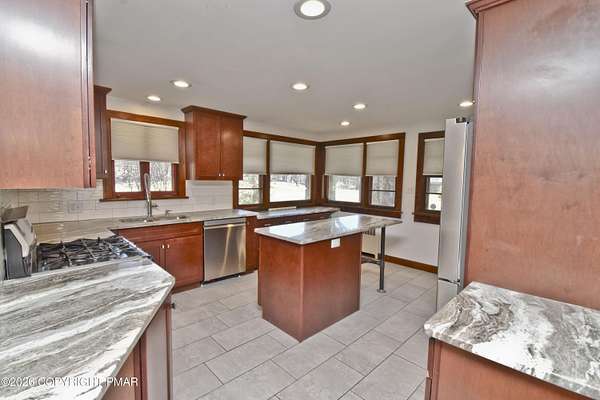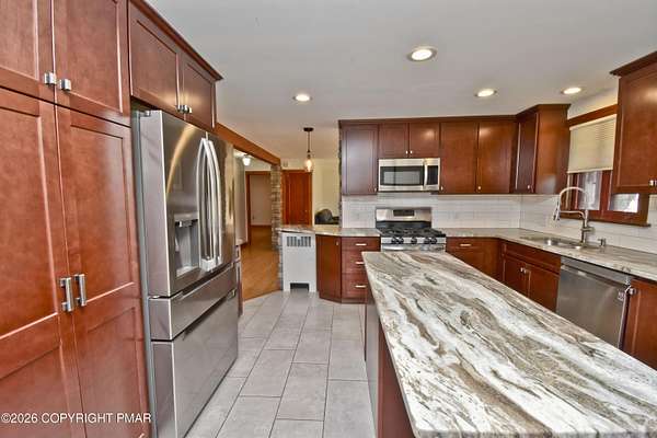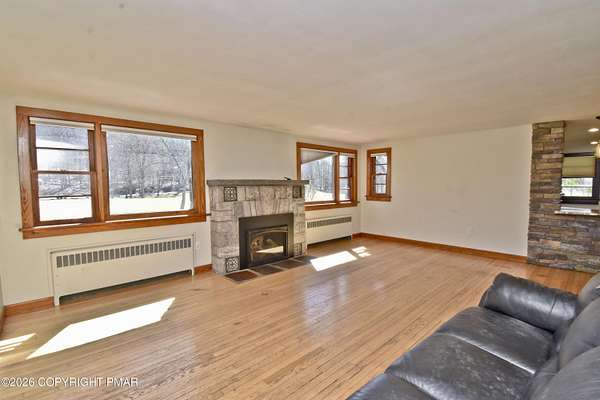 This special property blends charm, space, & an unbeatable location. A MAGNIFICENT STONE Cape Cod offering OVER 3500sqft, set on 3.9 flat acres in a highly desirable Stroudsburg setting. Peaceful surroundings & a long paved driveway set the tone. Inside features hardwood floors throughout & a cozy Living Room w/ a stone fireplace. The updated Eat-in Kitchen offers an island, stainless steel appliances, & great space to gather, while the Formal Dining Room is perfect for hosting. The OVERSIZED SUNNY sunroom is filled w/ natural light & overlooks the expansive backyard, your own private retreat. The 1st-floor Primary bd has a spacious closet & BEAUTIFULLY UPDATED private bath, plus an updated half bath for guests. Upstairs has 3 large bds + a versatile den ideal for a home office, playroom, or 5th bd. The full basement adds even more potential w/ a 2nd stone fireplace, full bath, & plenty of space to customize. Additional features include a 2-car garage, shed, covered patio, whole-house generator, & METICULOUS UPKEEP W/ NUMEROUS UPGRADES. Located just mins to downtown Stroudsburg, schools, hospitals, shopping, dining, & Rt 80 for an easy commute. NO HOA. A rare opportunity to own a beautifully maintained home w/ room to live, grow, & enjoy.