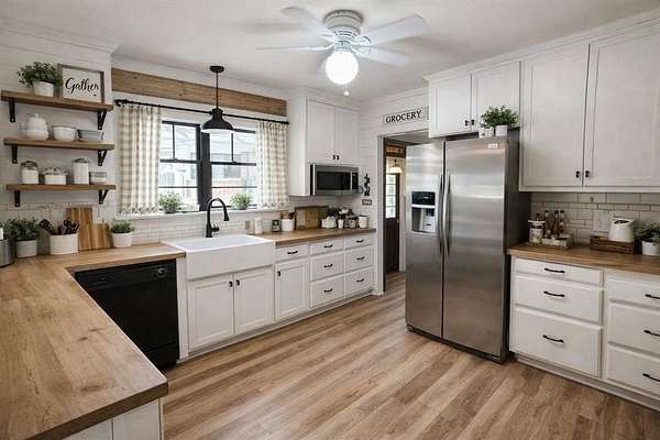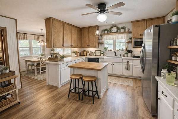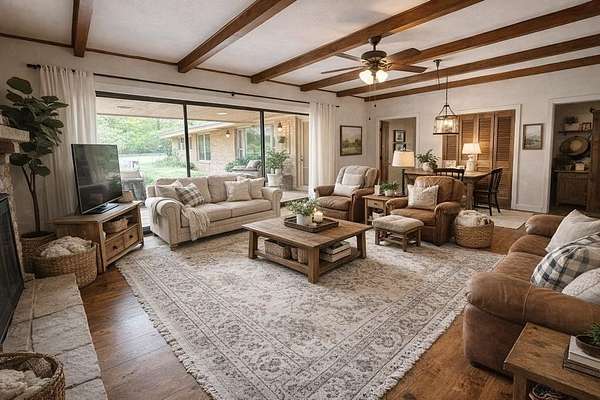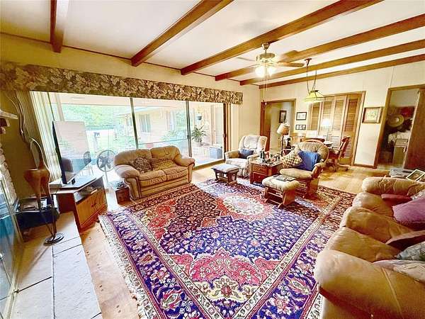 Spacious 3,034 sq ft home featuring oversized rooms, fireplace, two living areas, and two dining spaces. Large country kitchen with two sinks, double ovens, ample workspace, and abundant storage, plus multiple walk-in closets throughout and a covered patio. This beautiful property is well suited for livestock with a fenced pasture, barn, and paddock, along with a fenced backyard for separation. Enjoy the seasonal pond, mature trees, and open space ideal for animals and outdoor use. Additional improvements include a large shop with office and storage space, circular drive, two car garage, and so many beautiful mature trees! Enjoy peaceful country living with room to work and play, just minutes from Gainesville and surrounding area amenities. Ideal for horses, small scale ranching, or hobby farming......ready for your personal touches with endless possibilities! This is a rare opportunity to get acreage like this with a one story ranch with over 3000 sq.ft. that provides the space and feel of country living yet so close to town!