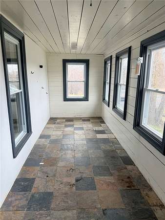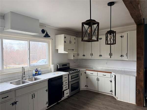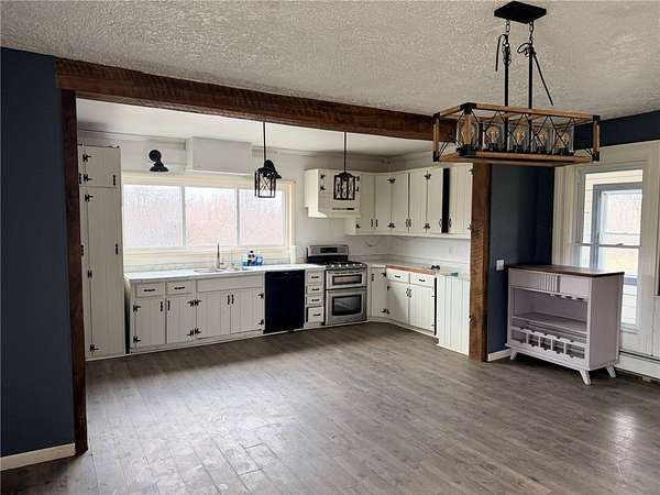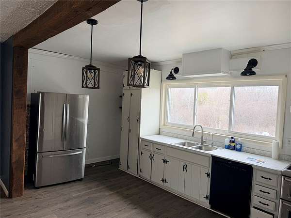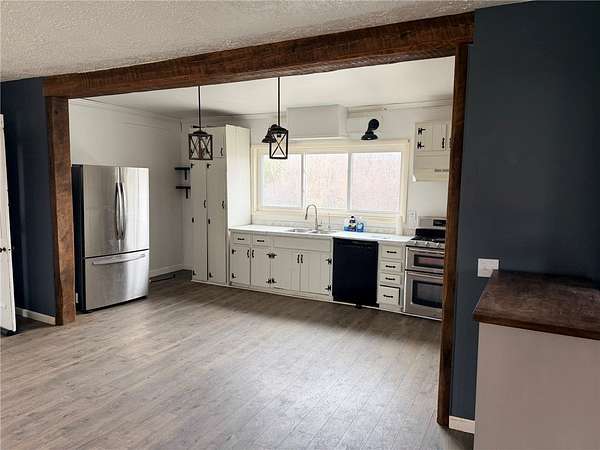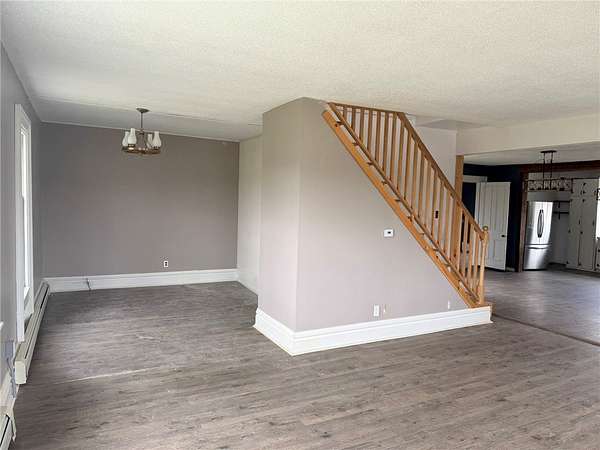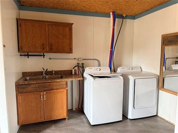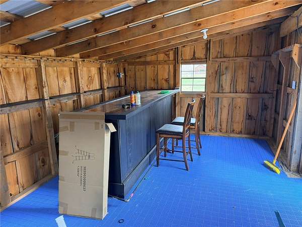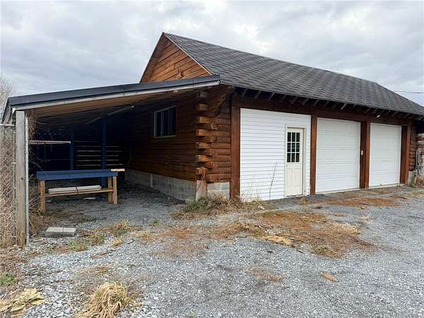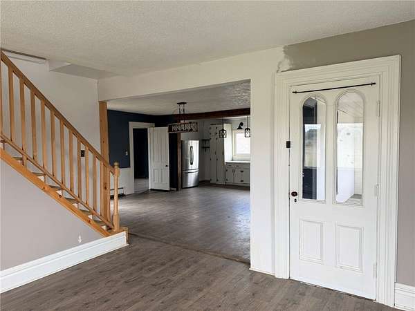 If space, versatility, and timeless character are what you're seeking, this updated 1800s farmhouse delivers. Set on over 7 picturesque acres spanning both sides of the road, the property offers privacy, scale, and functionality. With over 3,000 sq ft, the home features 5 bedrooms, 2 staircases, and a spacious open kitchen and dining area that flows into a large L-shaped living room-ideal for a home office or additional living space. The main level includes a first-floor bedroom, full bath, and enclosed front porch. Upstairs offers 4 bedrooms, 2 full baths, and an oversized laundry room. Outside includes a 3-stall heated garage, shed, and ample outdoor space. Two wells, septic, and generator hookup add efficiency and peace of mind. Located between Carthage and Great Bend, this home blends historic charm with modern updates. Improvements in 2024 include a new roof, staircase, and flooring in 3 upstairs bedrooms.