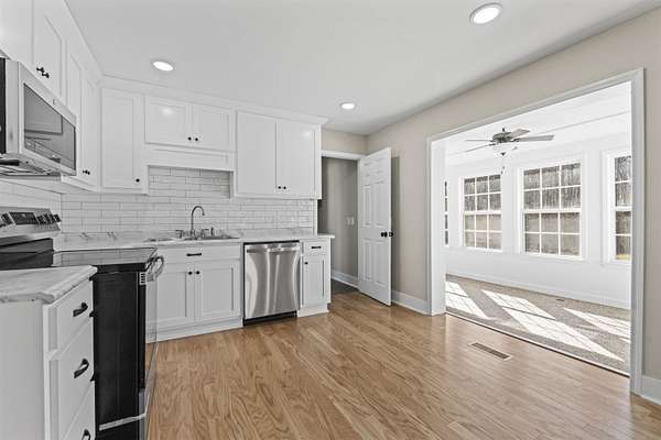 Welcome home to this beautifully updated 1,800+- sq ft property situated on approximately 1.83 acres. This 3-bedroom, 2-bath home offers an oversized family room, cozy sitting room with wood-burning fireplace, formal dining room, and a heated and cooled sunroom for year-round enjoyment. Hardwood floors, fresh paint, new lighting, and an updated kitchen with stainless steel appliances make this home move-in ready. Bathrooms feature tile flooring, and new tile flooring in both baths, and some hardwood floors are newly installed. Outside you'll find a 2-car carport and an impressive 30x50 powered workshop. Enjoy space, privacy, and convenience -- just minutes from shopping, schools, and easy access to I-65 for commuting.