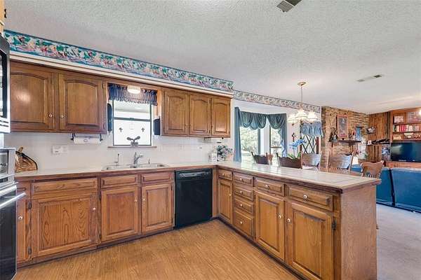 Welcome to your private 79-acre retreat in Erath County, perfect for hunters, outdoor enthusiasts, or anyone seeking privacy and tranquility! This expansive property is fully fenced and boasts two serene ponds. You'll find the ideal spot to build your dream home with spectacular countryside views, already equipped with a second well, septic system, and electric meter. For storage and hobbies, there are two barns: one is perfect for all your recreational toys, and the other is a four-stall horse barn with additional space for equipment storage.The existing home is a comfortable 3-bedroom, 2-bathroom, 2-car garage layout, offering 2,265 square feet of living space. It features a large, sunken living area complete with a cozy fireplace and built-in shelving. Formal dining area and split bedroom floor plan. Don't miss this opportunity!