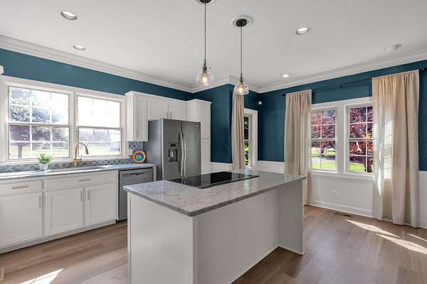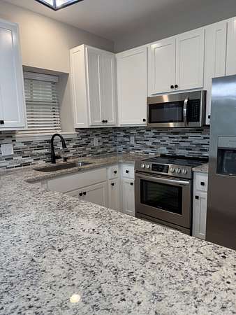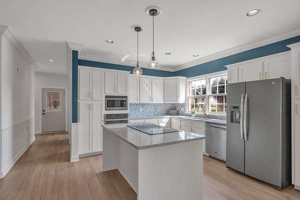 - Built-In Electric Oven, Cooktop, Dishwasher, Disposal, Dryer, Microwave, Refrigerator, Stainless Steel Appliance(s)