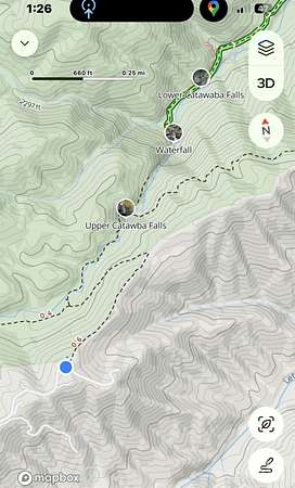 I-40 to Black Mountain exit 64. South on hwy #9 for several miles. Turn Left on Crooked Creek for approx 1 mile to a left into Catawba Falls Preserve. Thru the gate you'll want to stay straight on Arcadia Falls to the lot on the left.