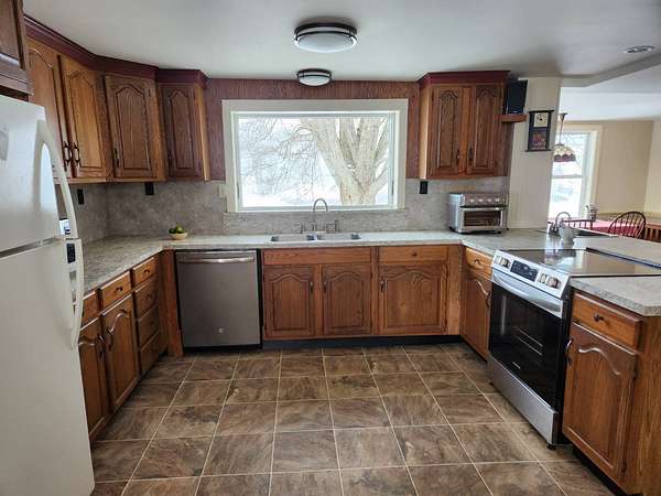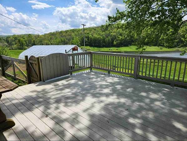 Welcome to your peaceful retreat on a quiet road. There are 45.74 acres of rolling countryside. This beautifully maintained home offers the perfect blend of comfort and solitude, with breathtaking views overlooking two large ponds totaling approximately 10 acres of water. These ponds are great for fishing as they are stocked with plenty of bass and bluegill, and perfect for swimming/ kayaking amongst other fun activities. In addition, this property offers an abundance of road frontage which can be used for multiple access points to the property. This sale includes a surveyed 1 acre lot with a new septic system, electric and a high-volume drilled well. There is an older mobile home on a concrete pad with this 1-acre parcel. This could be used for storage, renovated for an office, or a guest house. Stepping inside you'll find a cozy yet modern living space featuring two bedrooms and one and a half baths. There is an extra room on the first floor that could be a 3rd bedroom. The family room has hardwood floors. Enjoy the views of the ponds and woods from the dining room. There is an extra room that could be used for many different things. Recently renovated, this home has a new metal roof and windows, ensuring durability for years to come. Outside, you'll find two main garages to accommodate all your storage and hobby needs. The primary garage offers two bay, with concrete floors and automatic garage doors for convenience. Meanwhile, the larger garage spans 27x57, with four bays-including one spacious enough to accommodate up to a 20 ft camper. With concrete floors, great lighting and plenty electric outlets for power tools, this garage is perfect for any hobbyist's workshop. This property also features a greenhouse, measuring 21x48 and fenced-in garden, perfect for cultivating your own produce. The greenhouse has ample spring fed water supply as needed for vegetables and berries. There is currently asparagus and other vegetables growing. There are several blueberry bushes and currents on the property. One can grow produce year round. Conveniently located within a 10-minute drive of Sherburne, NY, you'll have easy access to all the necessities, including banks, pharmacies, groceries, gas stations, restaurants, and more. For additional amenities and commercial offerings, the vibrant city of Utica is just a 45-minute drive away, while Binghamton is a mere hour and 15 minutes away, little over an hour to Syracuse, 40 minutes to Cooperstown and 20 minutes to Hamilton, NY (farmers markets, Colgate University, restaurants) Located less than 2 miles from the Charles Baker State Forest and Brookfield trail system where there is 9,400 acres. 120 miles of marked and maintained trails. One can enjoy horseback riding, hiking, fishing, camping, snowmobiling, skiing and hunting here. Experience the ultimate blend of country living and modern convenience at this remarkable property. Don't miss your chance to make it yours!